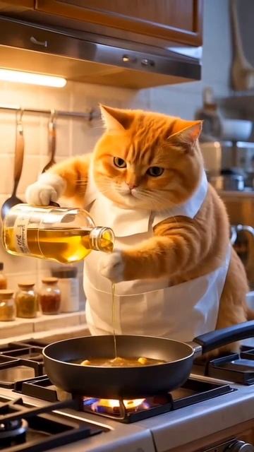 Котик готовит еду