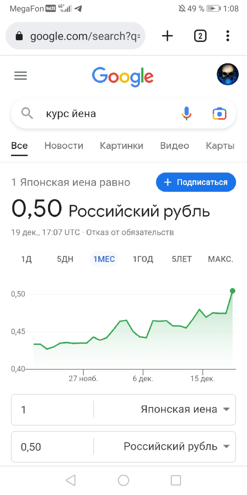 Котировки йены