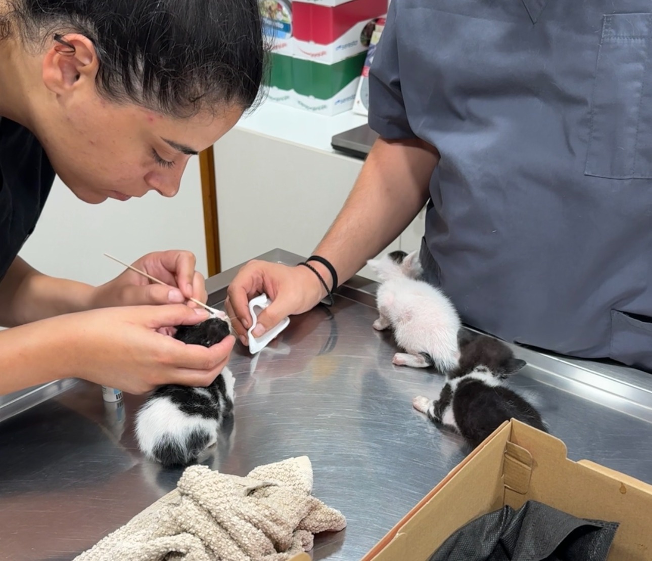 Повезли эти комочки в ветеринарку. Там их осмотрели, пощупали, сказали что они сыты и нуждаются в мамке. Я не знал, оказывается без мамки там включается повышенная сложность по уходу: кормить молочком из пипетки каждые два часа, помогать им пописькать, держать в нежном температурном режиме, короче все тоже самое что и у парней с температурой 37.1