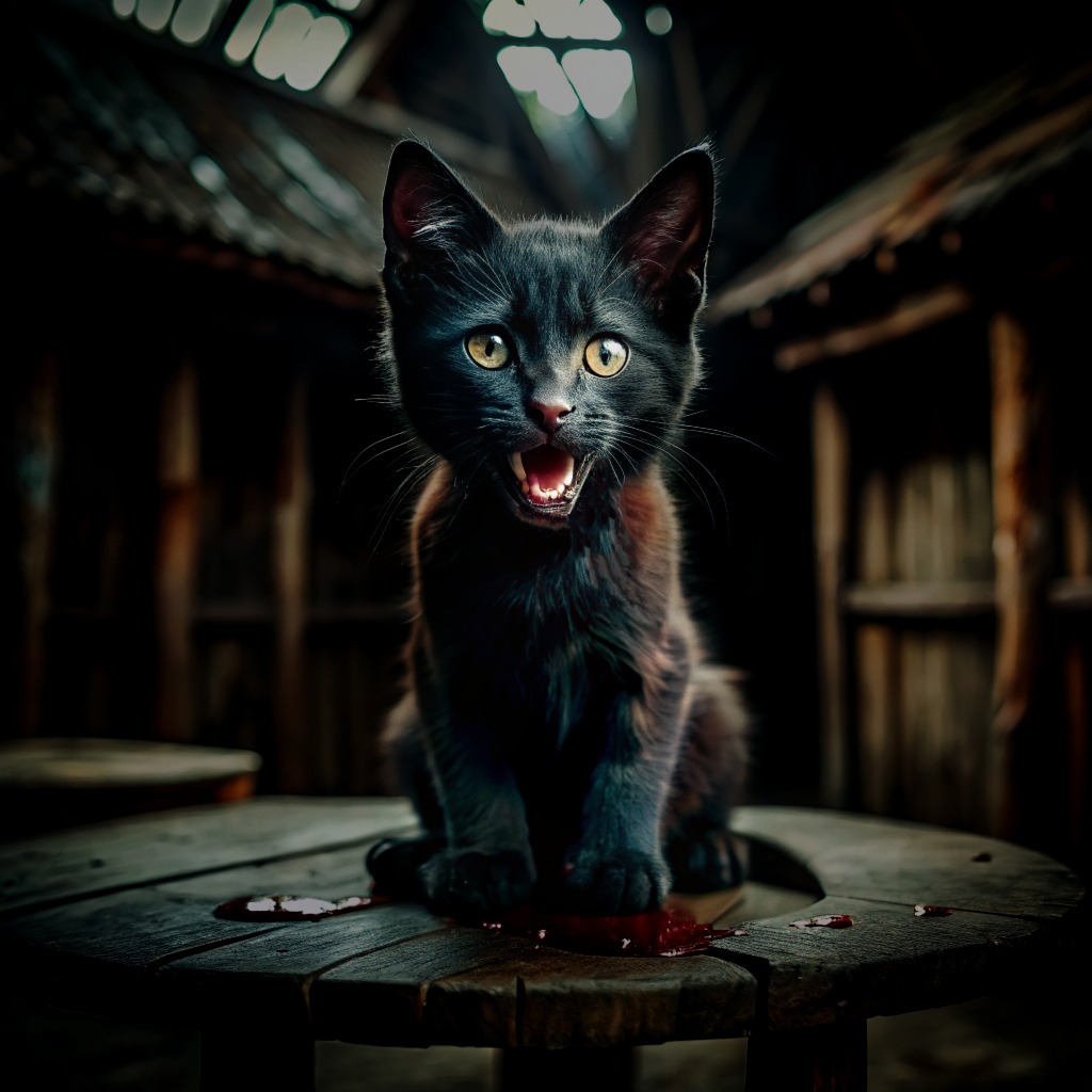 Первой мыслью было, что сплю я ещё. Тело оцепенело. Вся ситуация нереальной казалась. Вернулось всё чувство ужаса, которое было, когда потемну возвращался с рыбалки. Над ногой Баюн завис. Только больше он был раз эдак в пять. Глаза краснющие, когти обхватывают ногу целиком. И зубами впился. Заметил он меня. Медленно от ноги оторвался и начал приближаться, всё ближе и ближе...