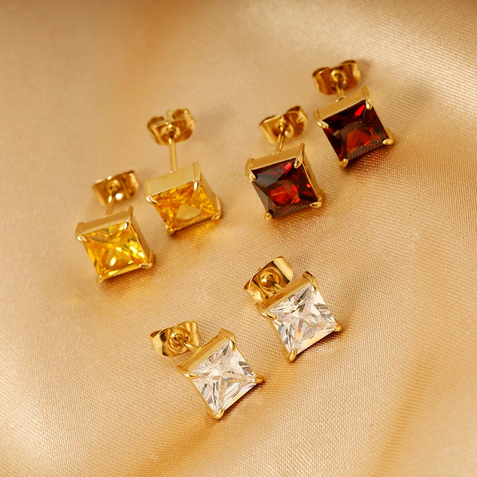 «KouCh Gold Plated Anti-Allergy AAA Cubic Zirconia Blue Square Rhinestone Stud Earrings For Woman Party Luxury Stone Stud Piecing» по лучшей цене на рынке! Всего за 18$ (1710рублей)