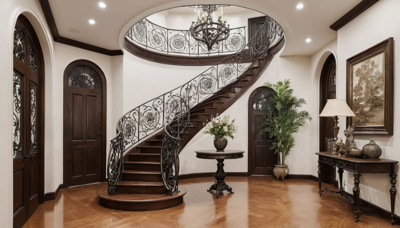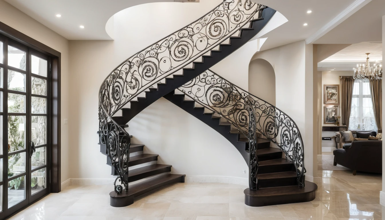 Кованая лестница в доме на второй этаж