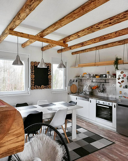 Ковер на кухне создает дополнительный уют . При помощи паласа вы легко зонируете помещение, выделив рабочую и столовую зону .
