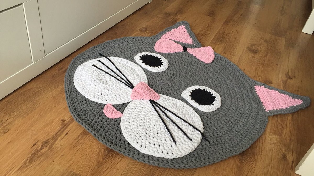 14 05 2019 - Детский коврик крючком «Кошка с сердцем» - схемы вязания декоративного коврика для детских игр и украшения интерьера детской .