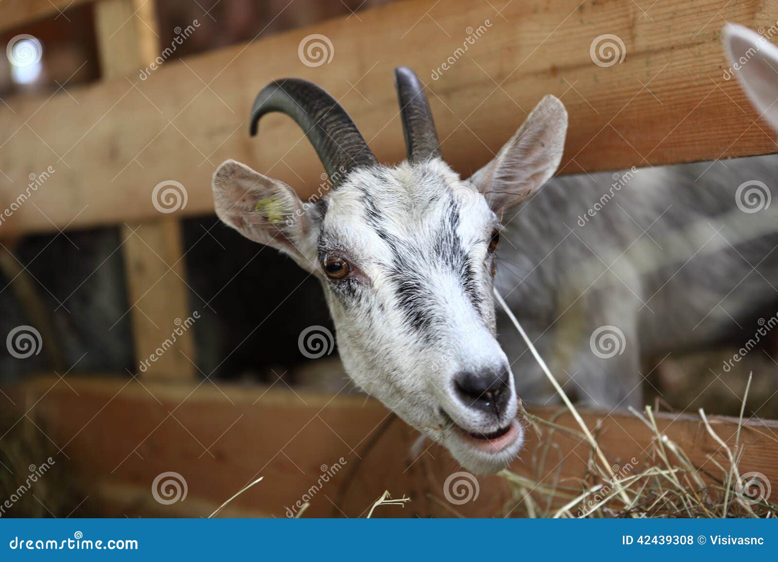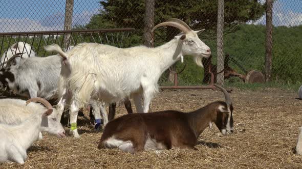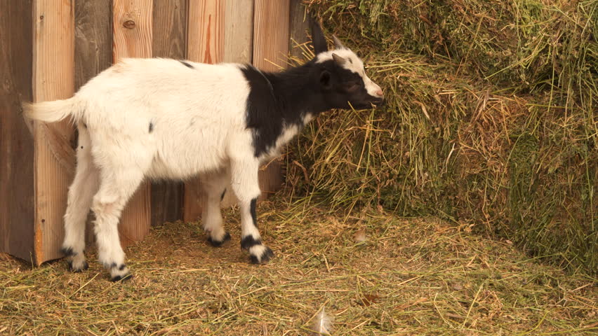 Коза ест сено