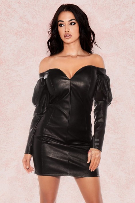 Кожаное Платье С Открытыми Плечами
