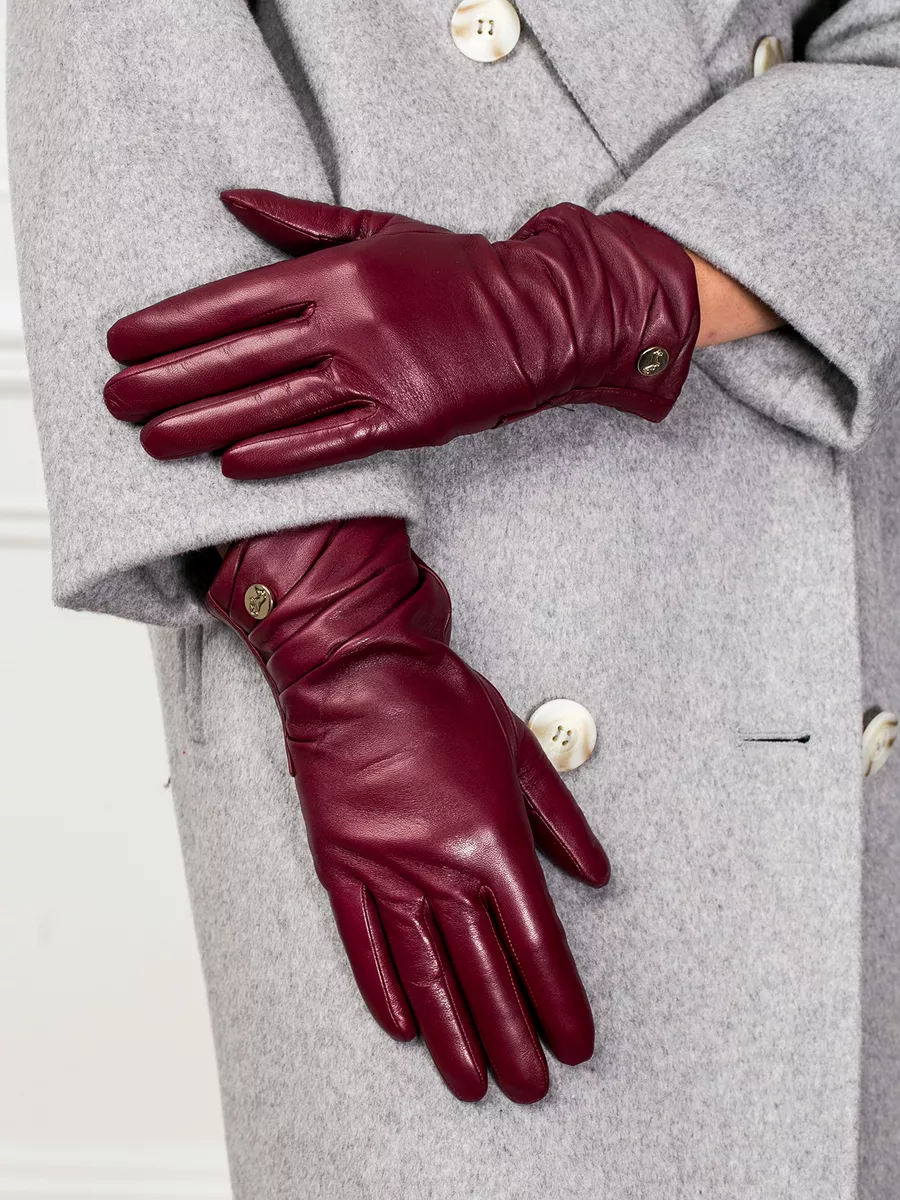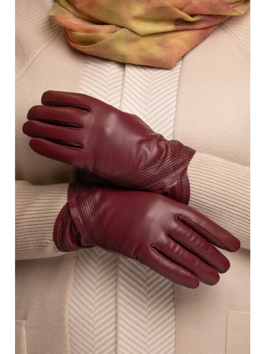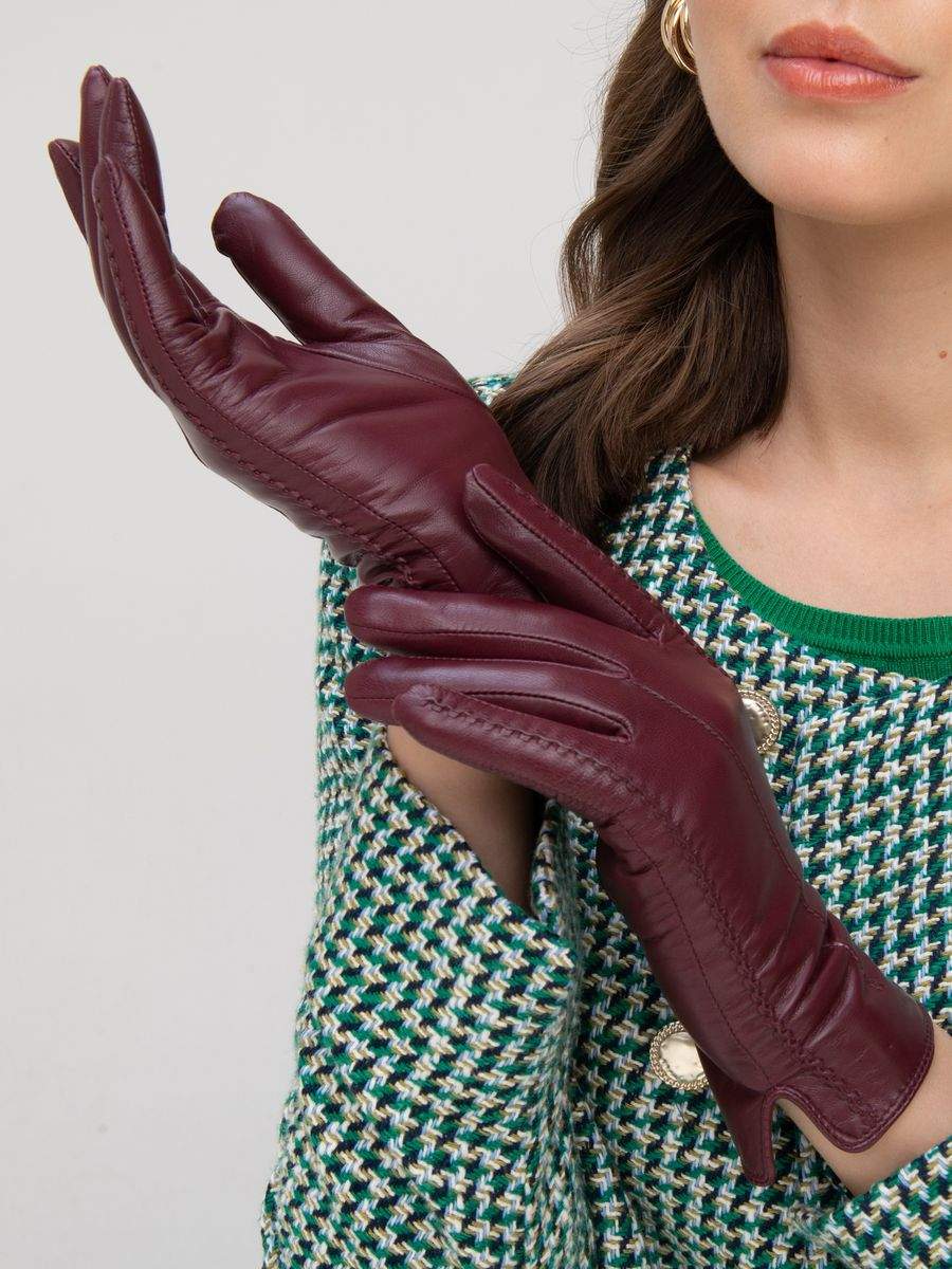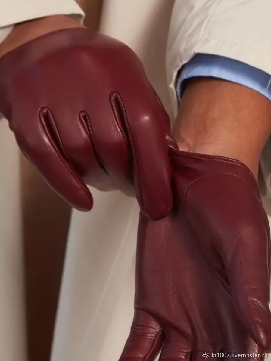 Кожаные перчатки бордовые