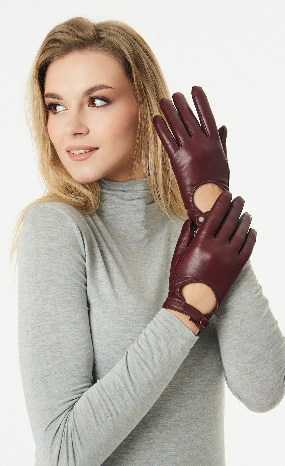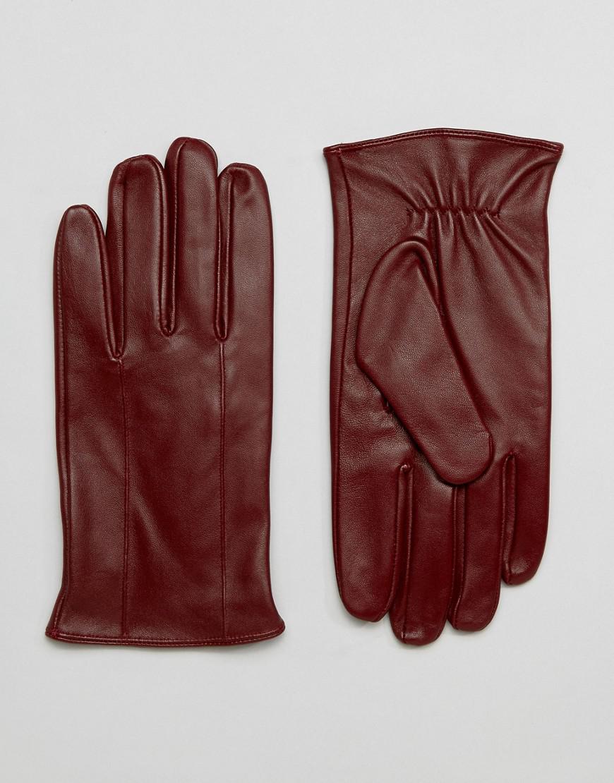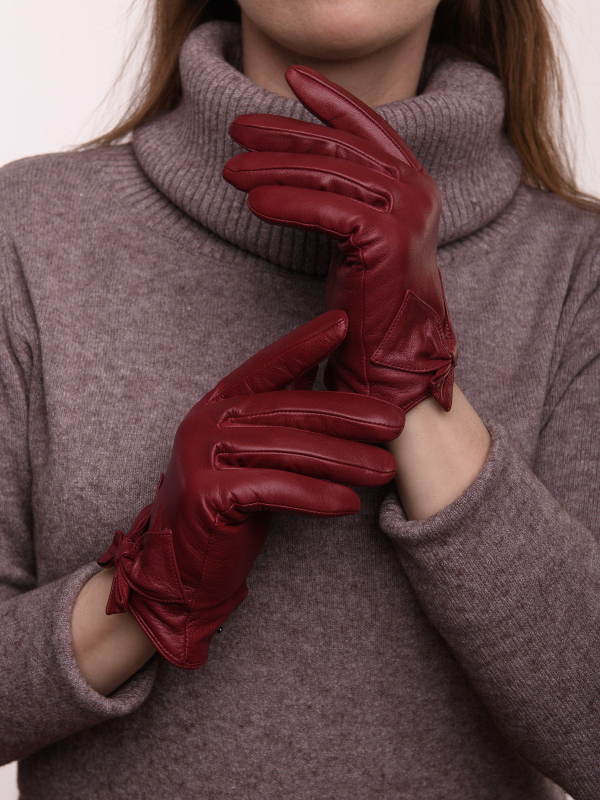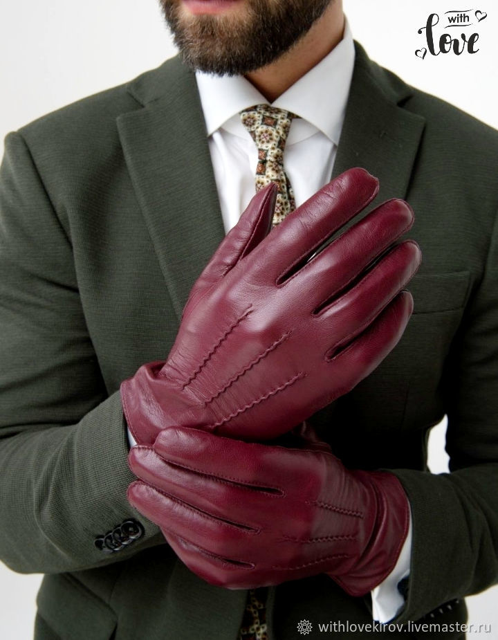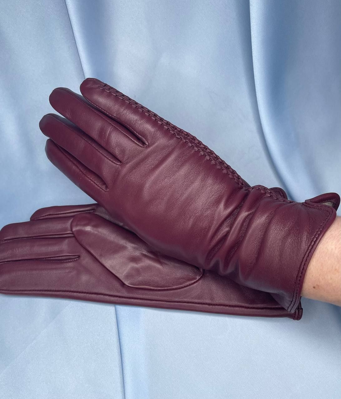 Кожаные перчатки бордовые