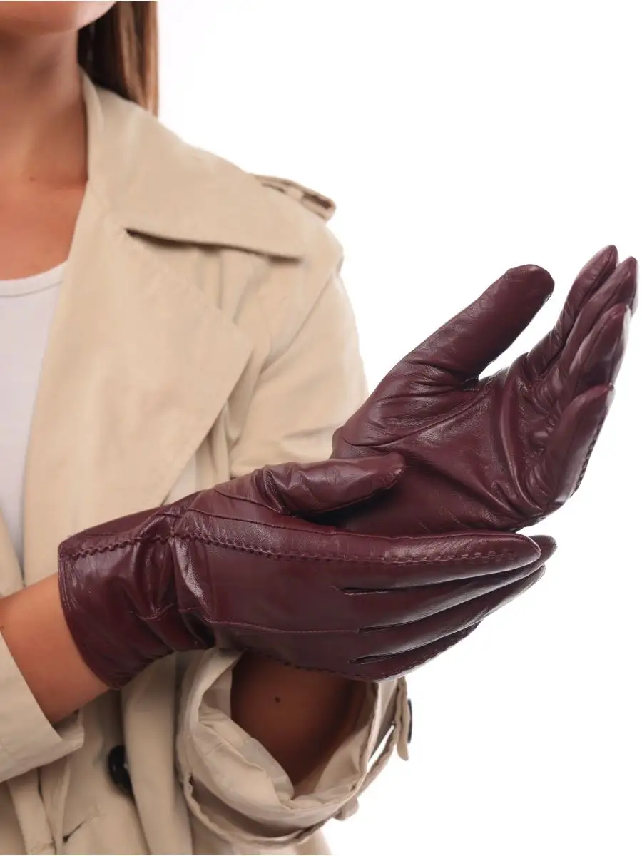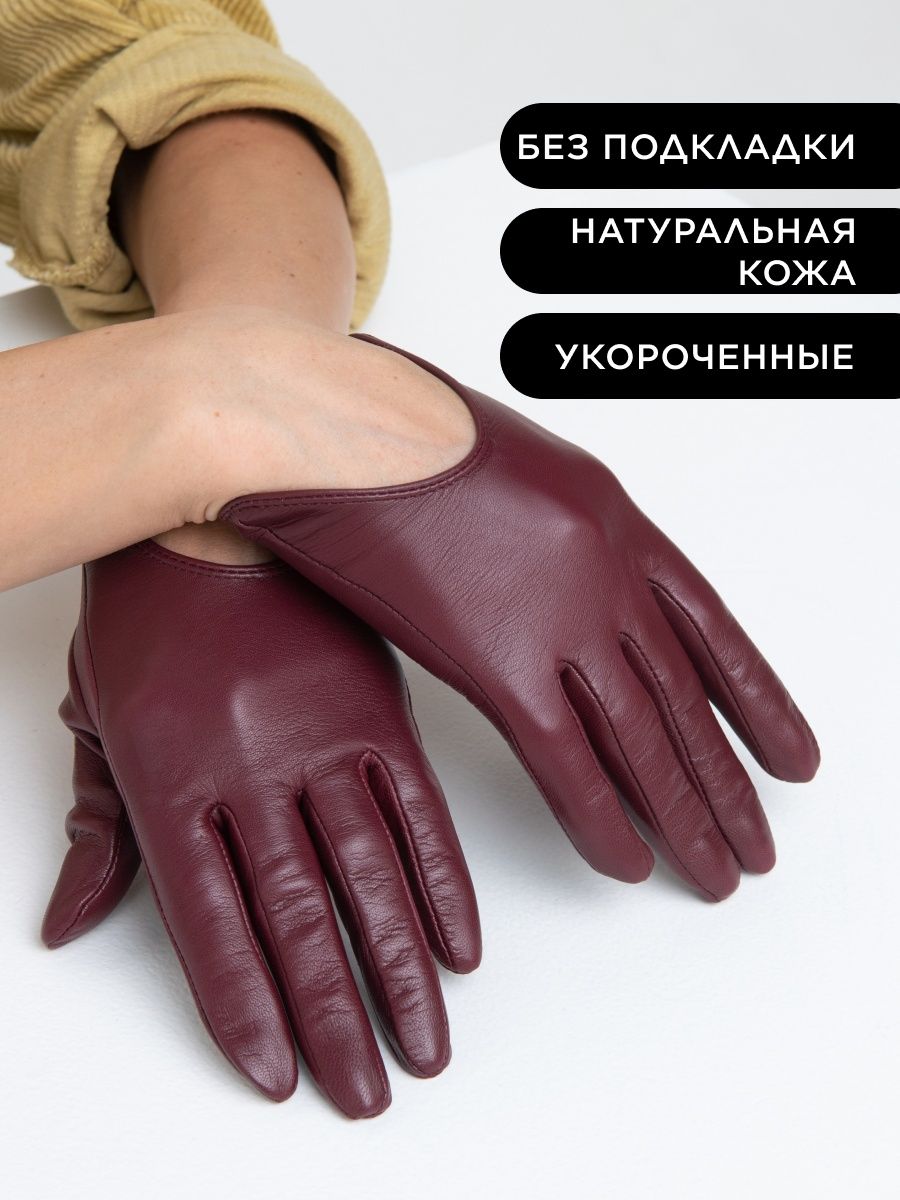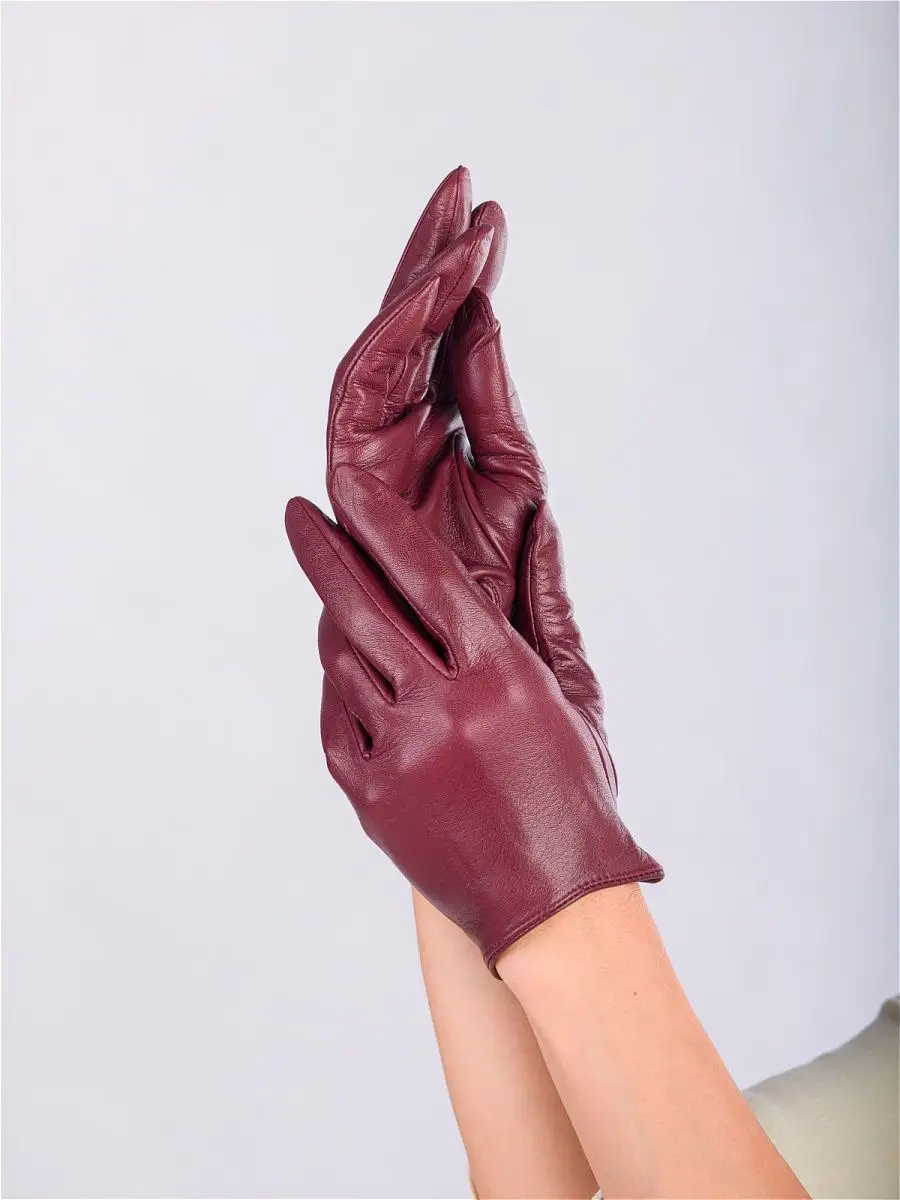 Кожаные перчатки бордовые 165 фото