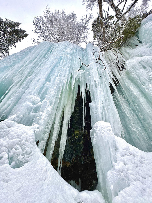 На третий день погода изменилась, все затянуло облаками и повалил снег, подниматься на самый верх уже не было никакого смысла, поэтому начали изучать лесные участки, выбрали перспективный склон и пошли туда, сверху рельеф чем то похож на Лужбу, но тут все полянки переходят в ручьи с интересным рельефом, которые впадают в речку Черную, которая бежит по своеобразному каньону, с практически вертикальными стенками, знающие люди сказали что это уже похоже на Красную поляну.