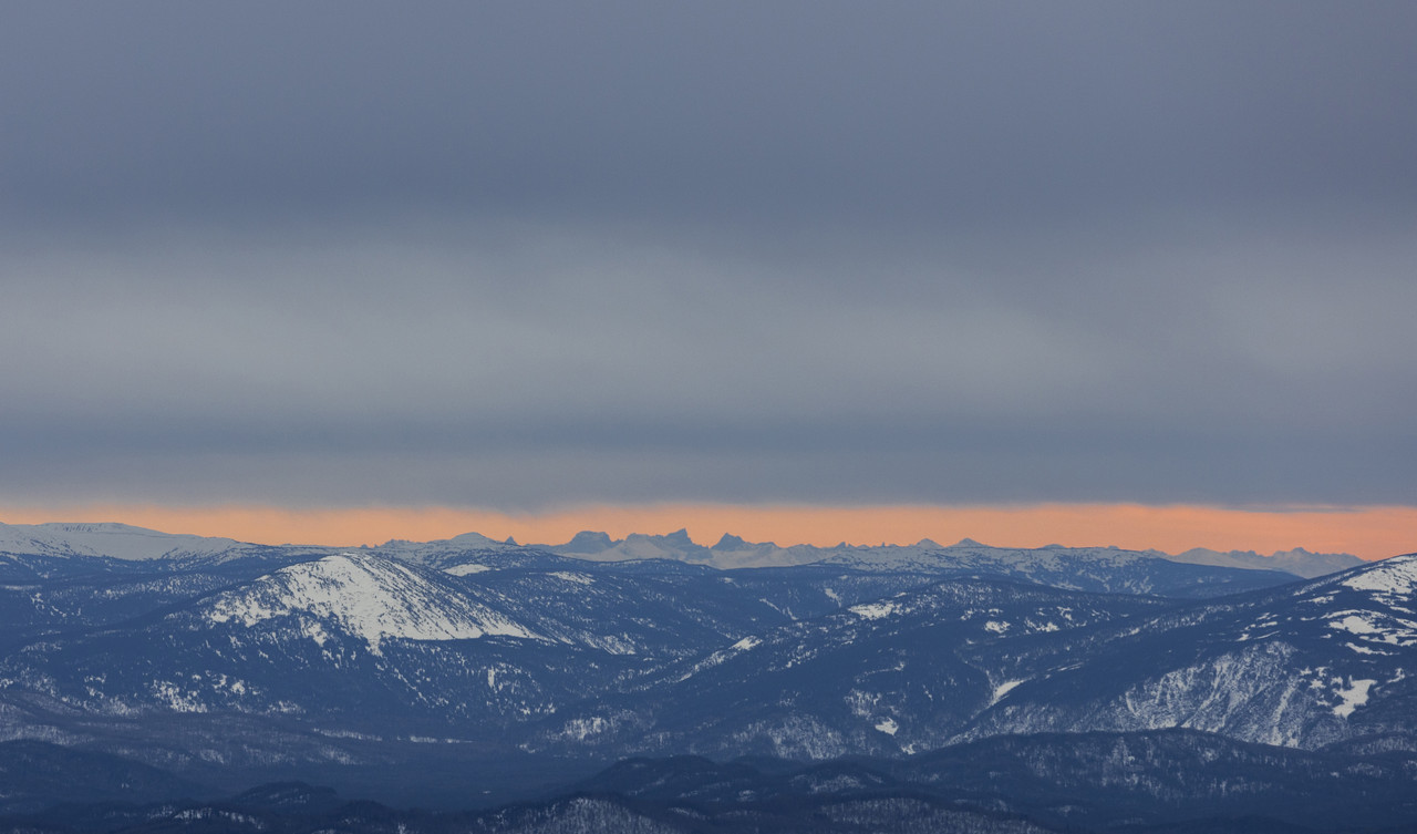 Обратный путь не доставил никаких проблем. Основные задачи нашей мини экспедиции выполнили – посмотрели на окружающие горы с вершины и разведали условия для катания. В ясную погоду с вершин видно пик Эдельштейна, высшую точку Красноярского края – пик Грандиозный, уже домашние горы Москву и Чебулак, с удивлением обнаружили что видно Ергаки – пик Птица и Звездный характерно выглядывали на закате. По катанию очень разнообразно: огромные альпийские поля и цирки, узкие крутые кулуары в северных цирках, «лужбинские» прочесы в лесу, «краснополянские» ручьи и каньоны. Конечно не все споты были в своих лучших кондициях: северные цирки были задуты, южные локации на низких высотах уже были поплавлены. Поедем ли мы сюда еще? Вполне возможно, но глядя на изломанную линию горизонта, заполненную белыми вершинами, думается что можно еще бесконечно открывать склоны, где еще никто не катался, да и людей то толком не было.