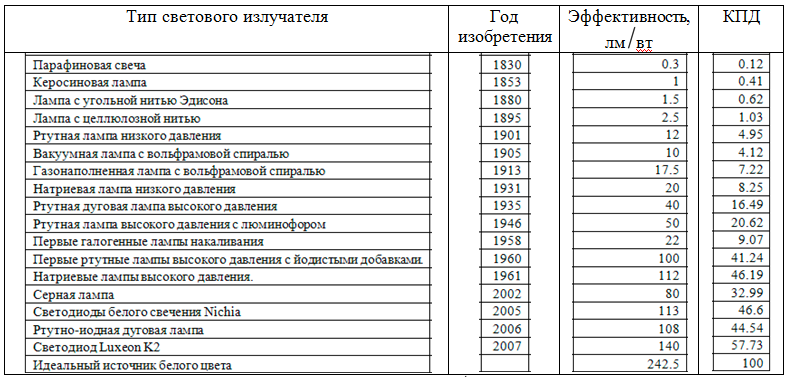 Кпд источников света