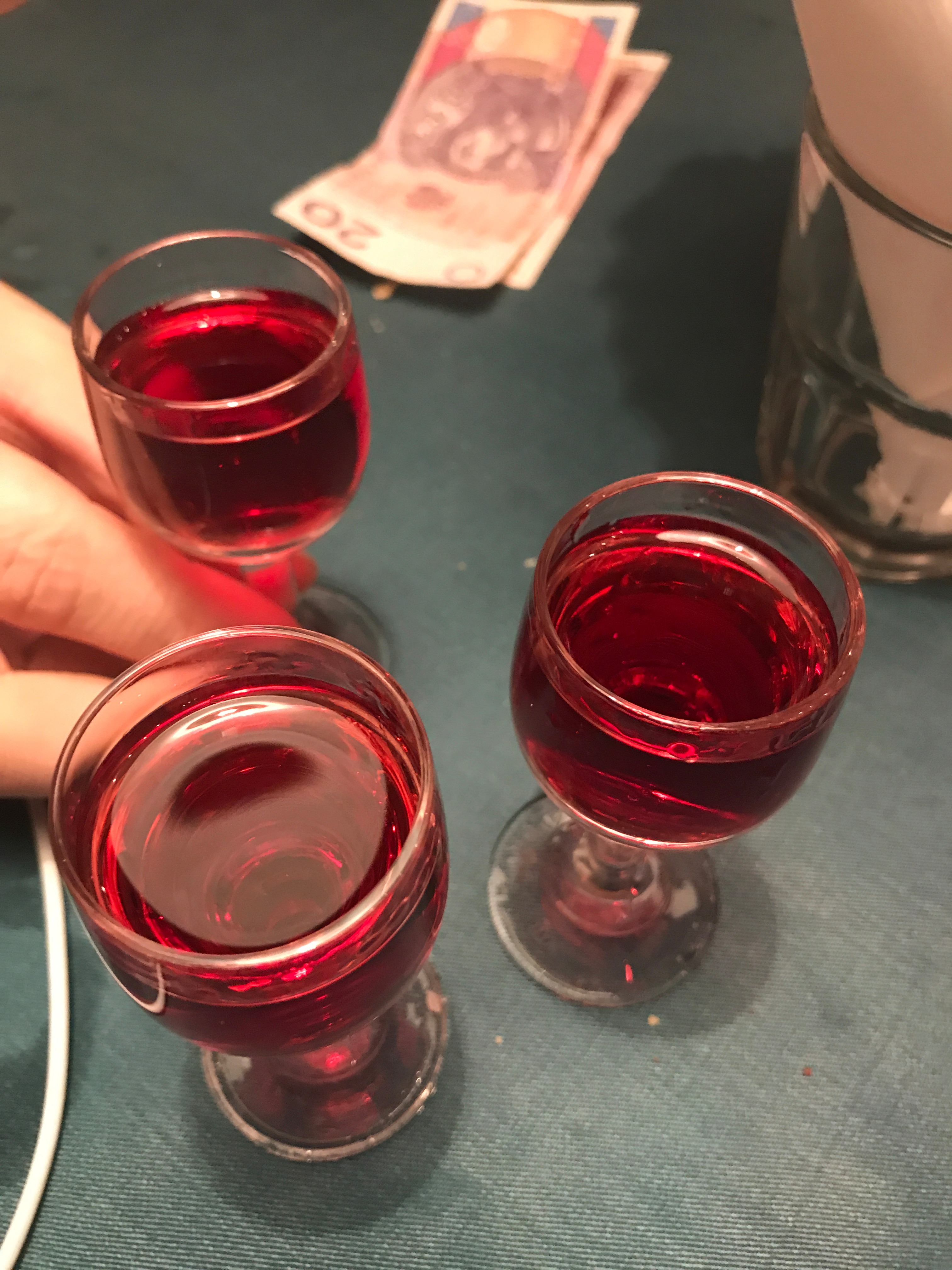 Ну а в самом конце принесли то ли клюквенную, то ли брусничную настойку. И тоже в подарок от ресторана.