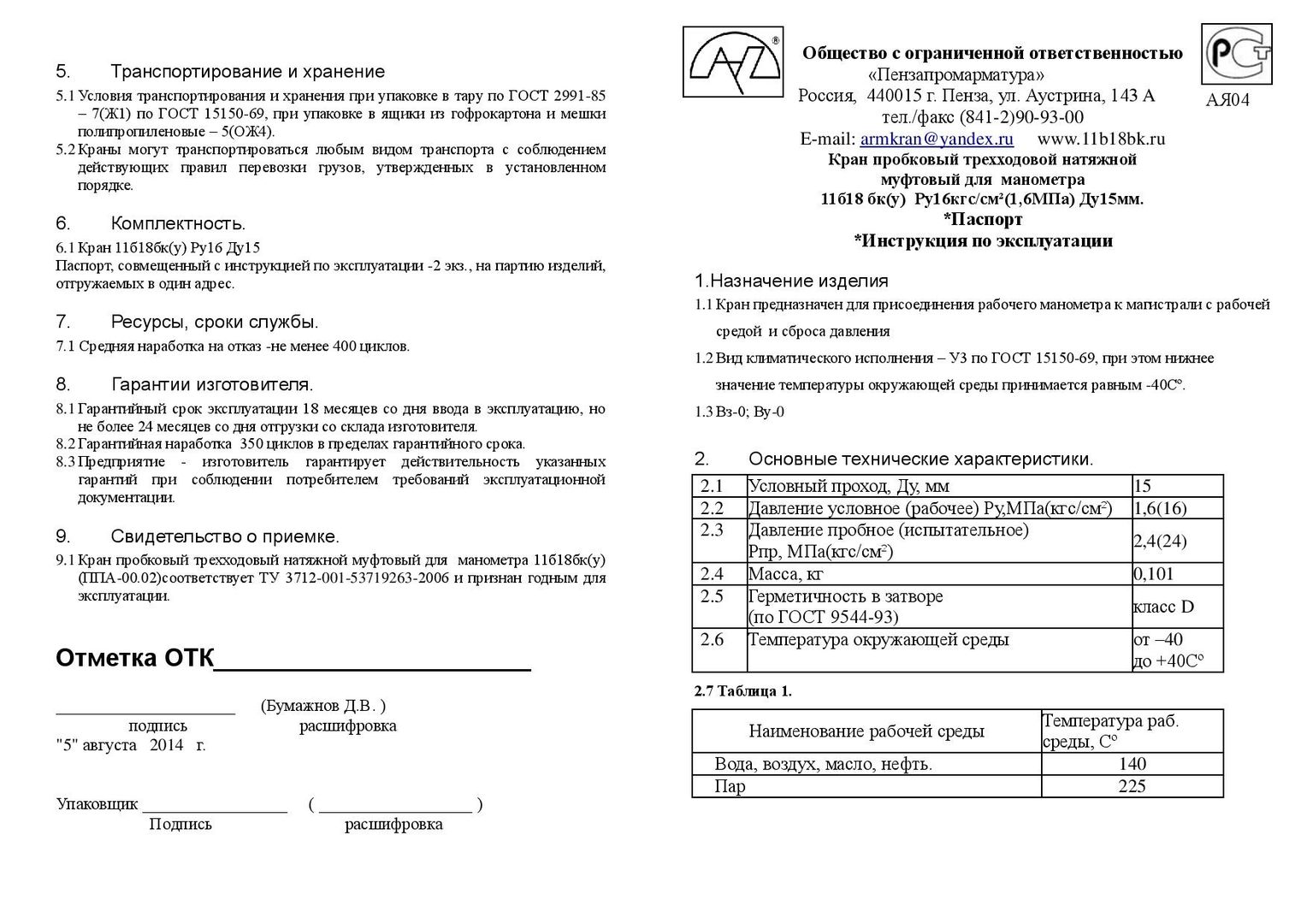Кран для манометра сертификат