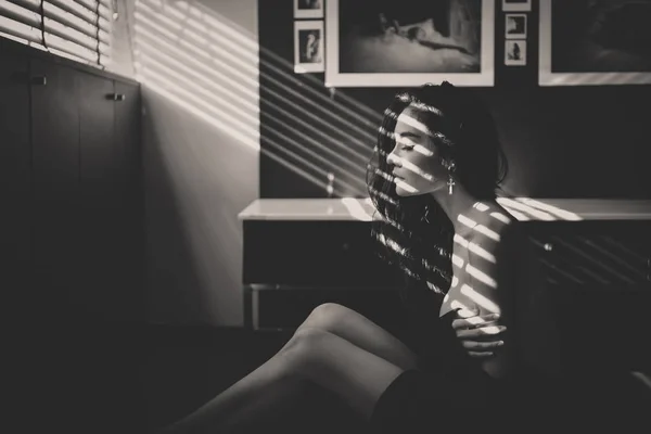 Красивая девушка раздевается в спальне