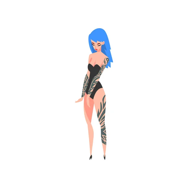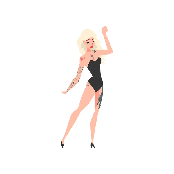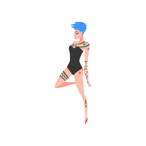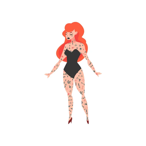 Красивая нимфа с татуировками в красных трусиках