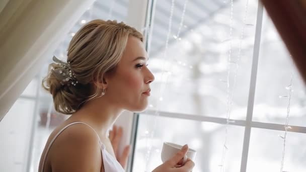 Скачайте стоковую фотографию Красивая юная брюнетка в белом кружевном неглиже сидит на подоконнике и держит белый занавес - 102159076 из многомилионной коллекции лицензионных фотографий, иллюстраций и векторных . . .