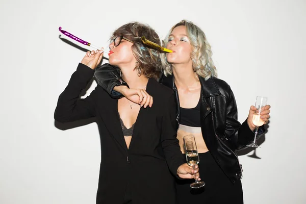 Красивые Девушки Улыбающиеся Бикини Вместе Портрет . . .