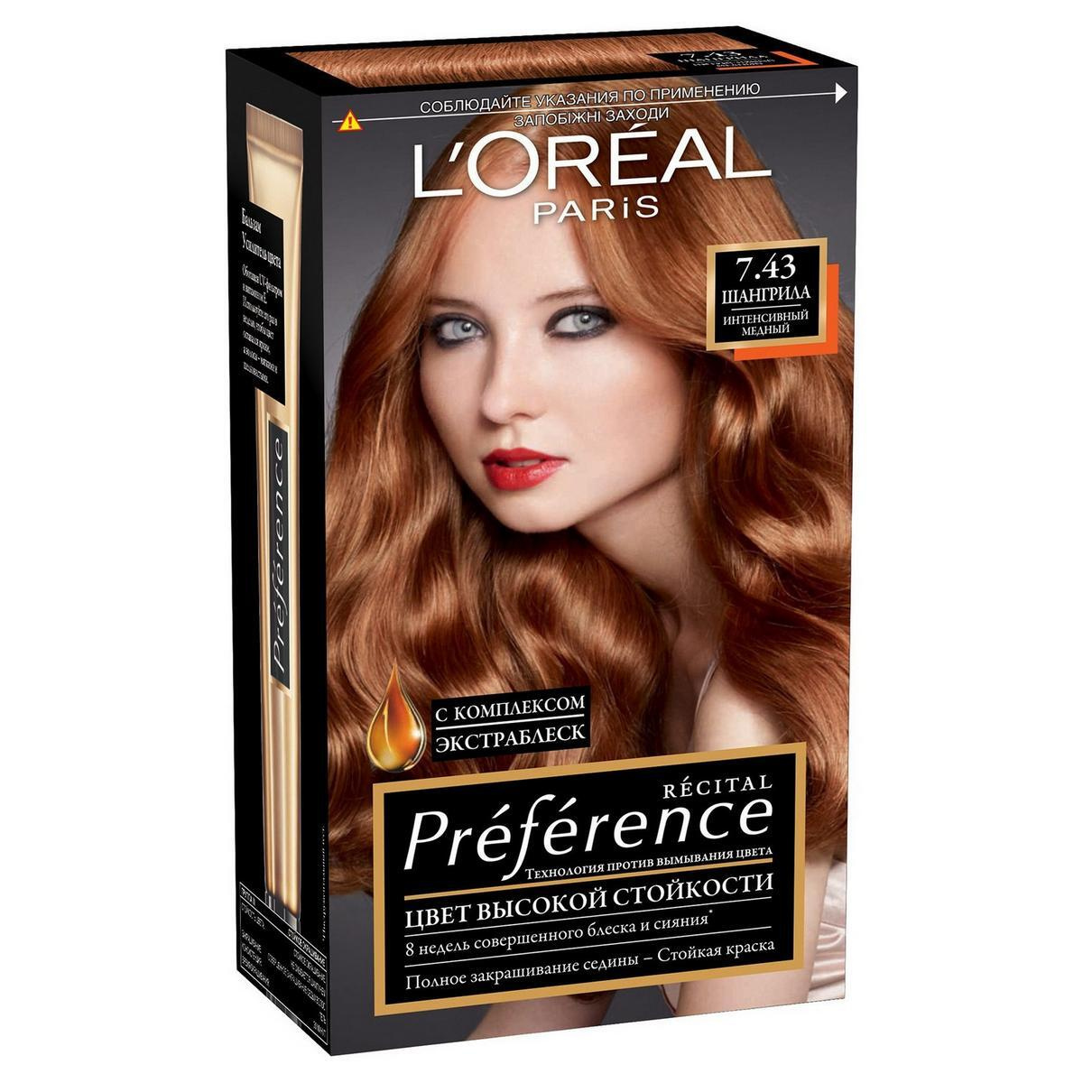 Мне понравилась краска для волос Лореаль Преферанс в оттенке 7 .43 Шангрила / Интенсивный медный - красивый, яркий и насыщенный медный цвет с сияющими переливами .