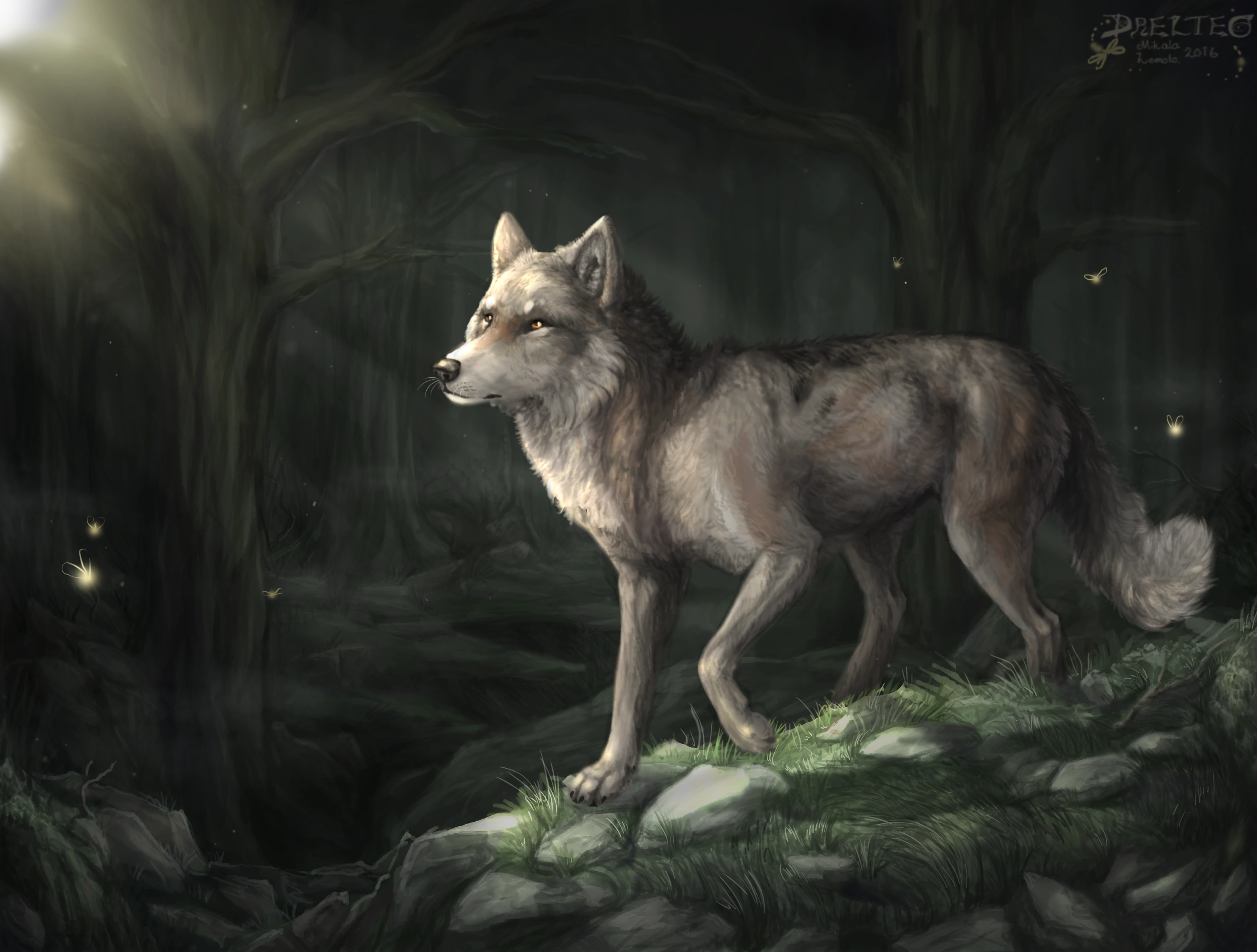 Красками белыми серый волк