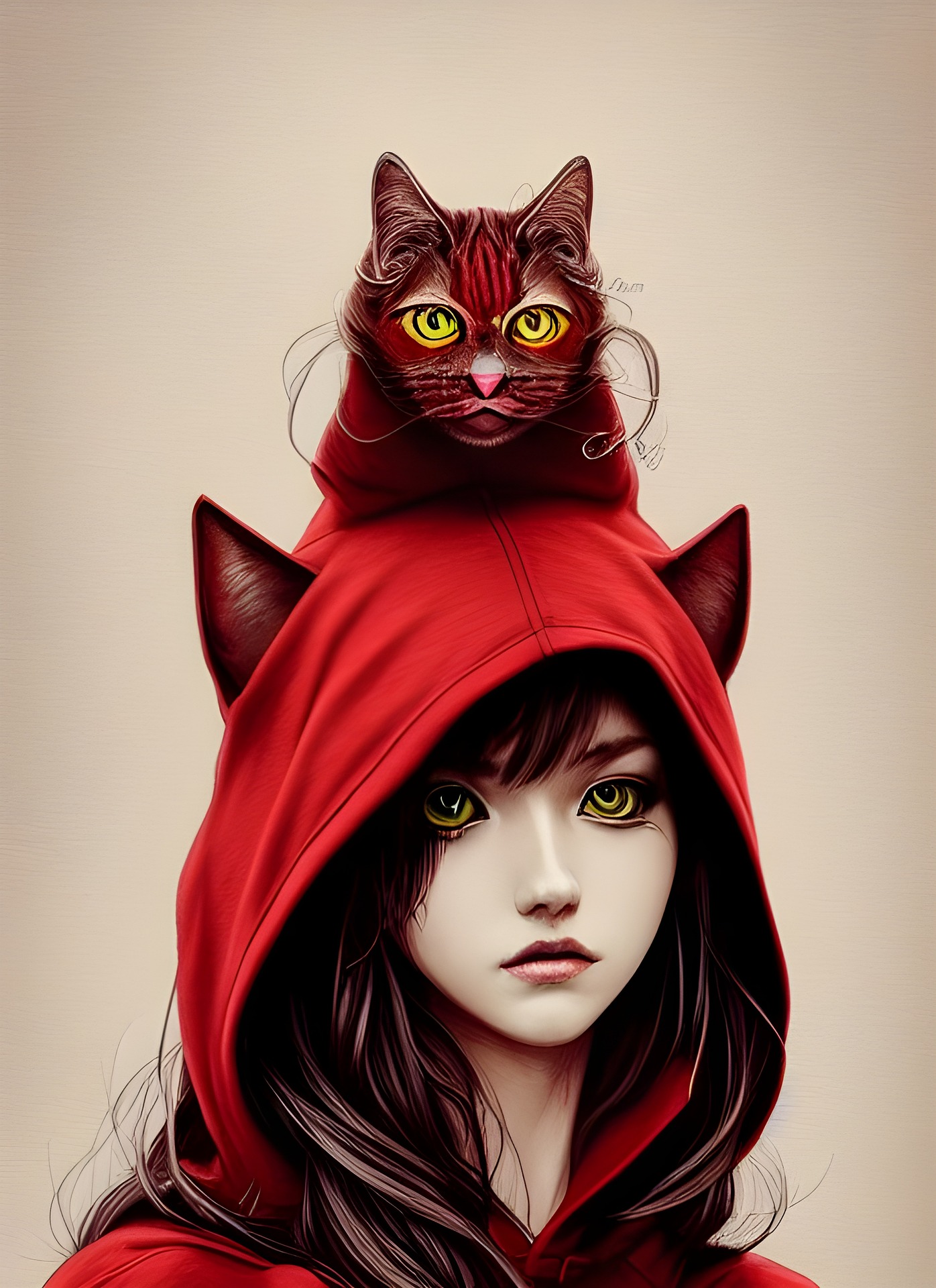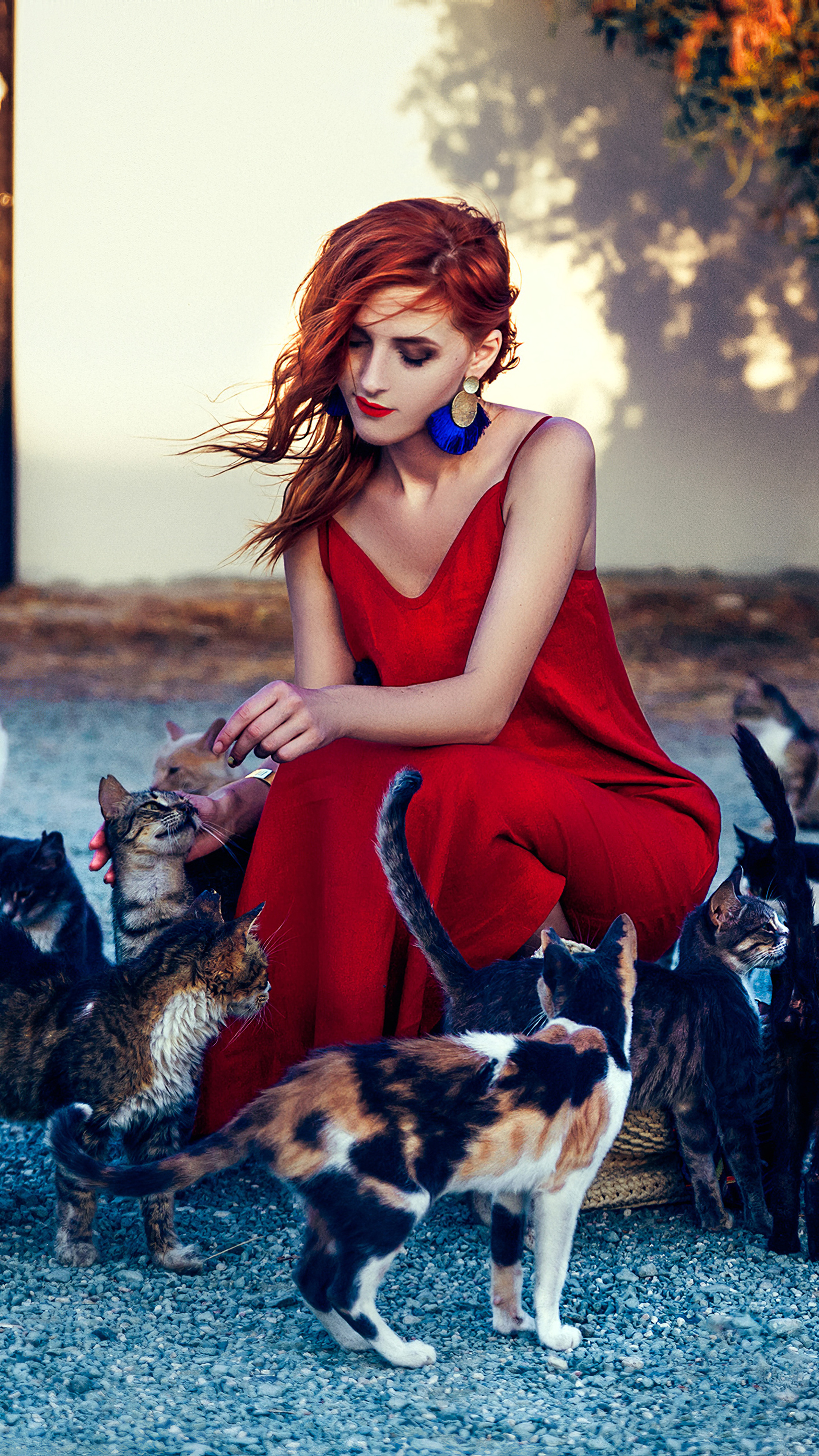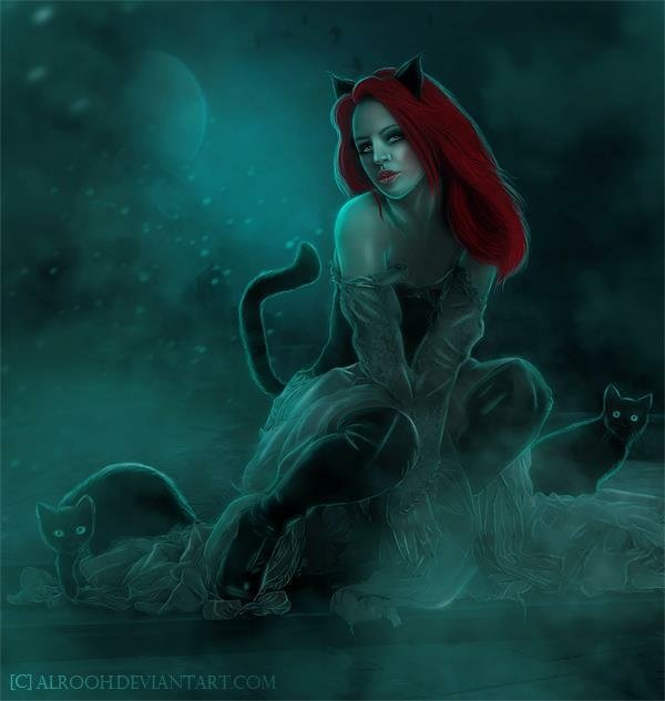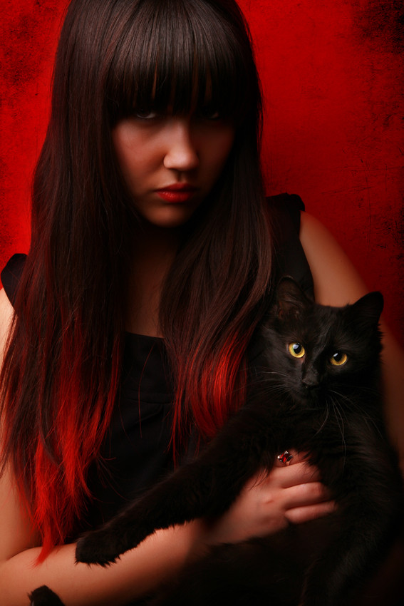 Красная кошка девушка