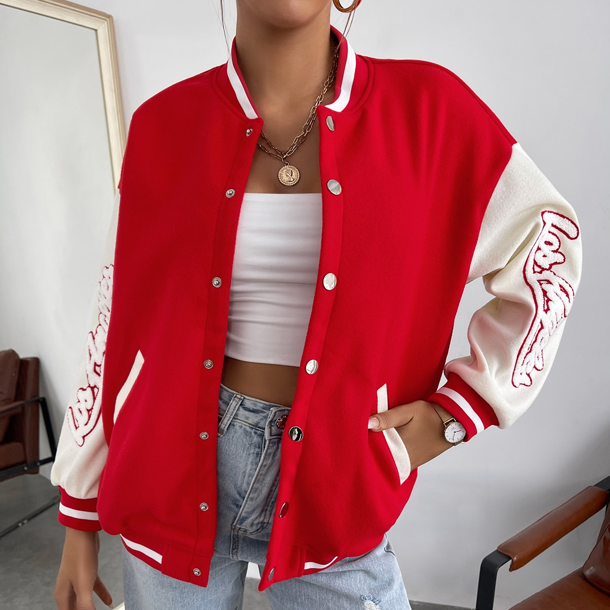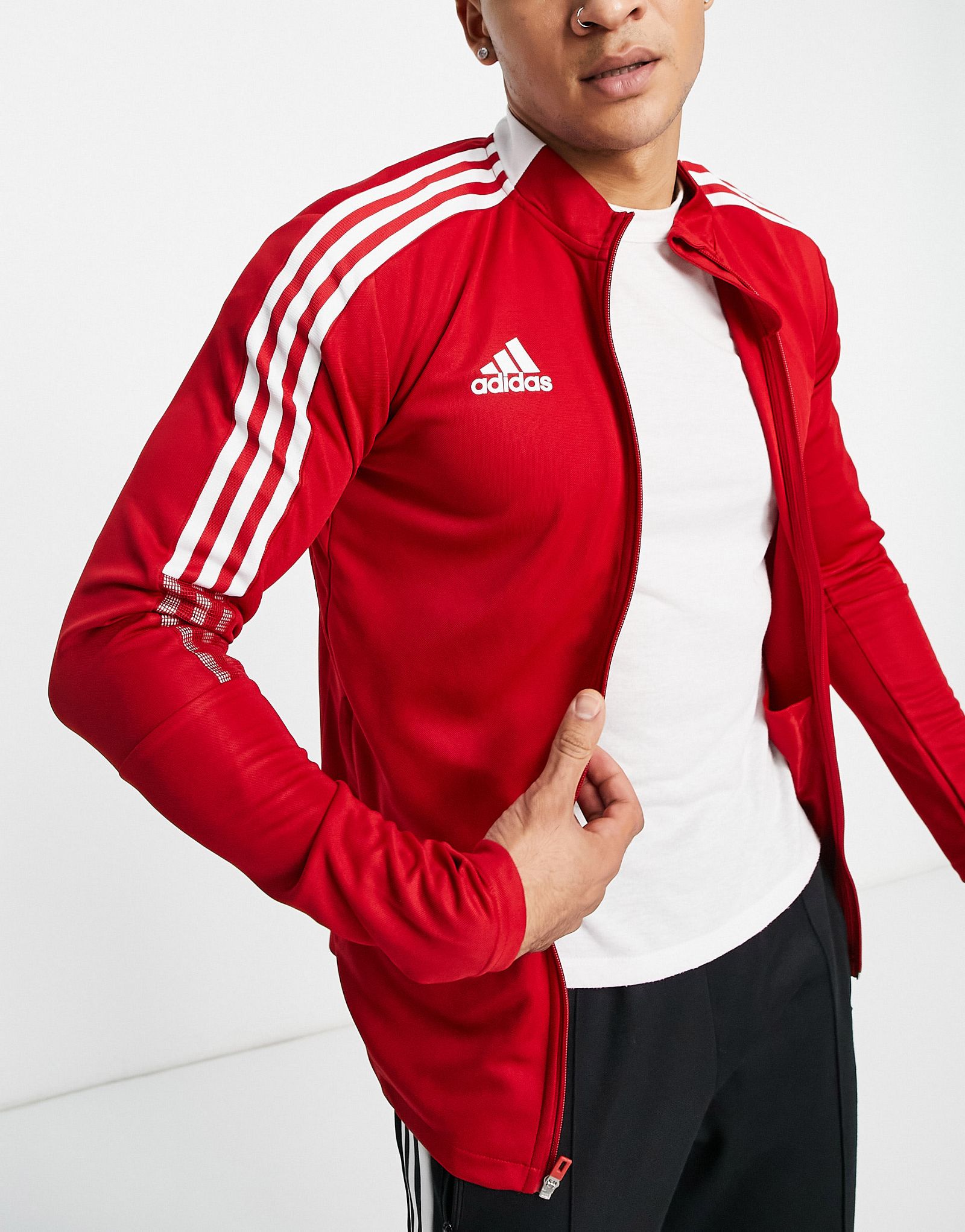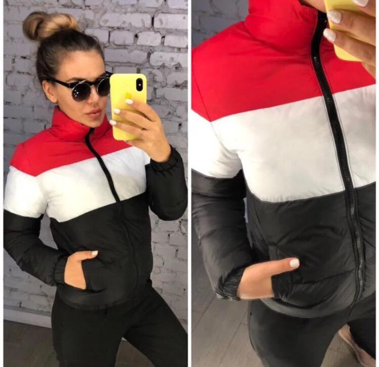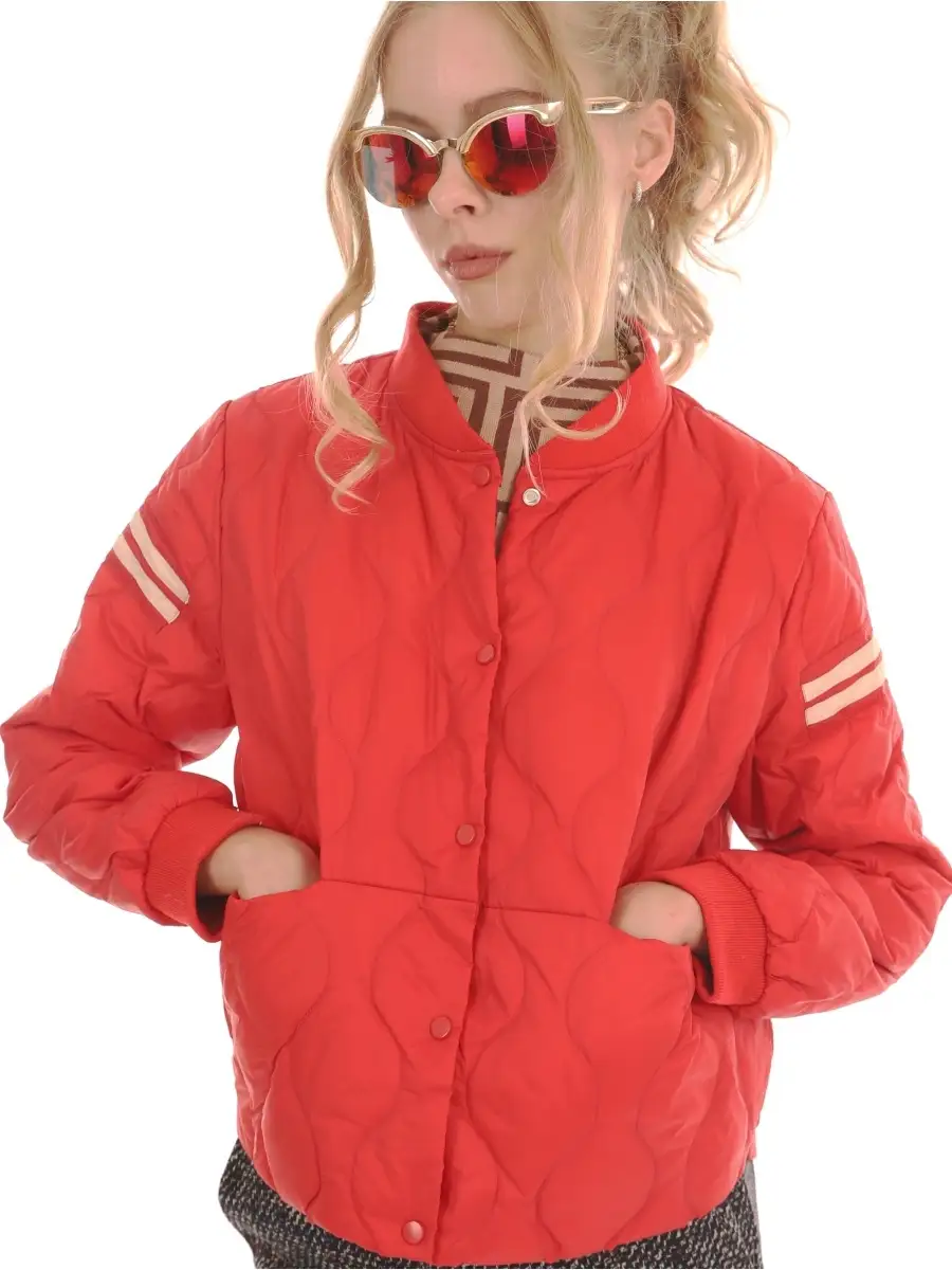 Красная куртка с полосками 85 фото