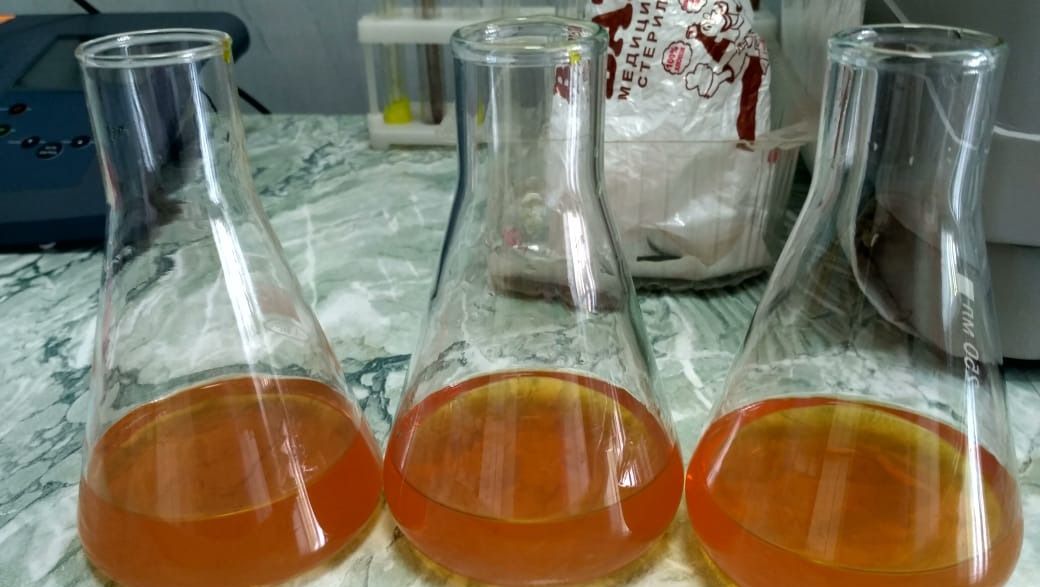 Красно бурой жидкостью