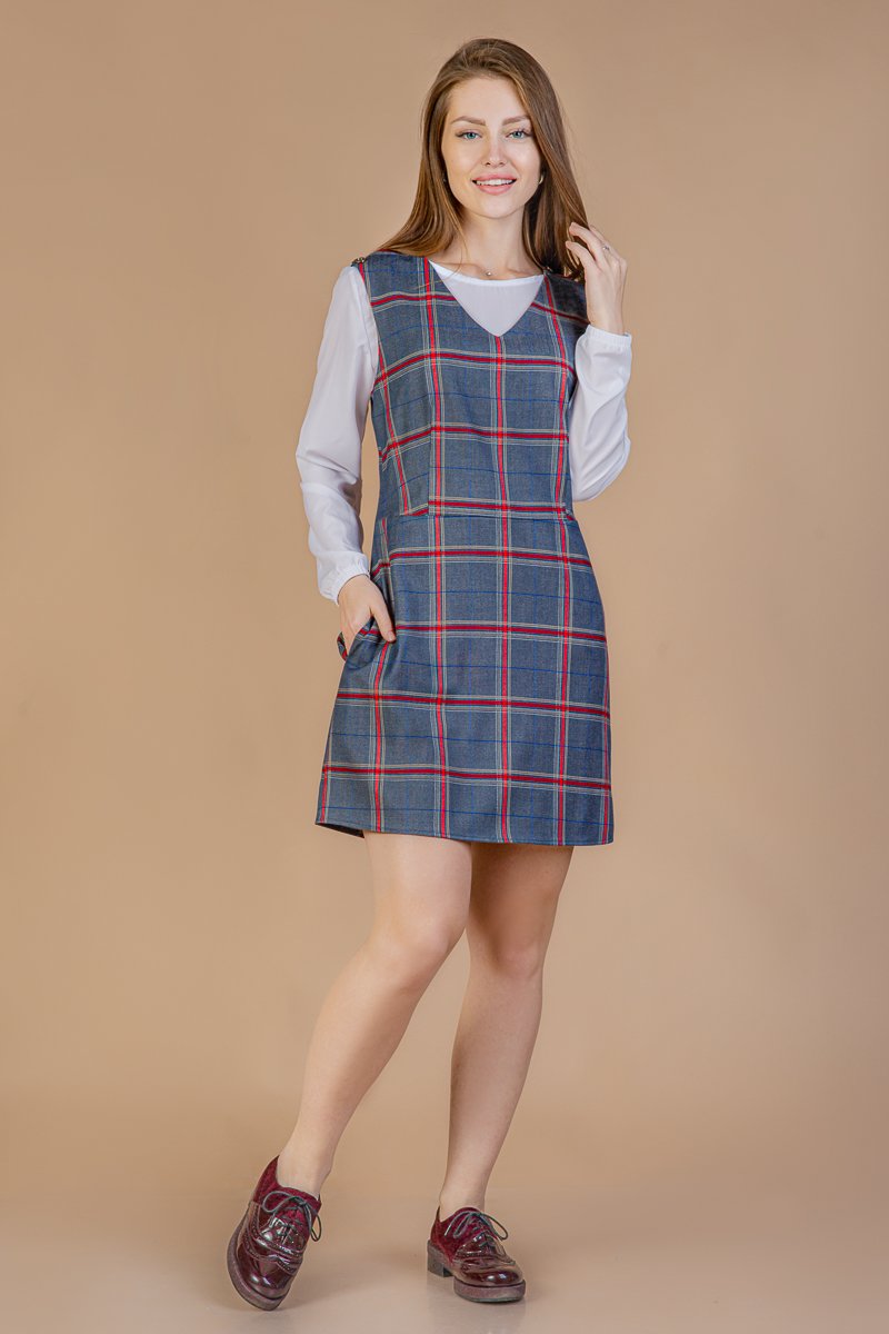 Платье с карманами - Красный/Черная клетка - Дети | …