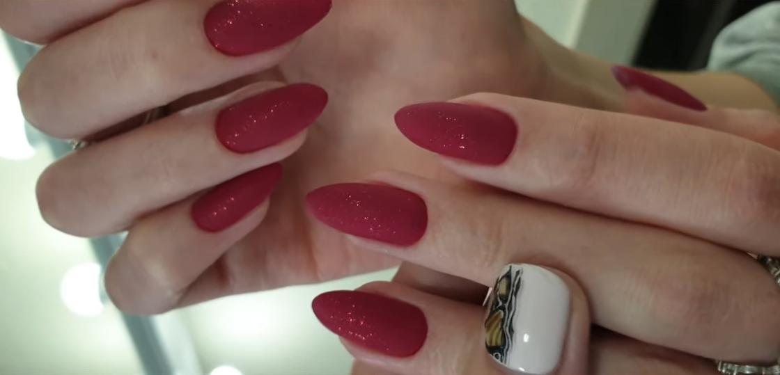 Красный маникюр на острые ногти