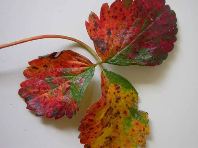 Красные пятна на листьях виктории