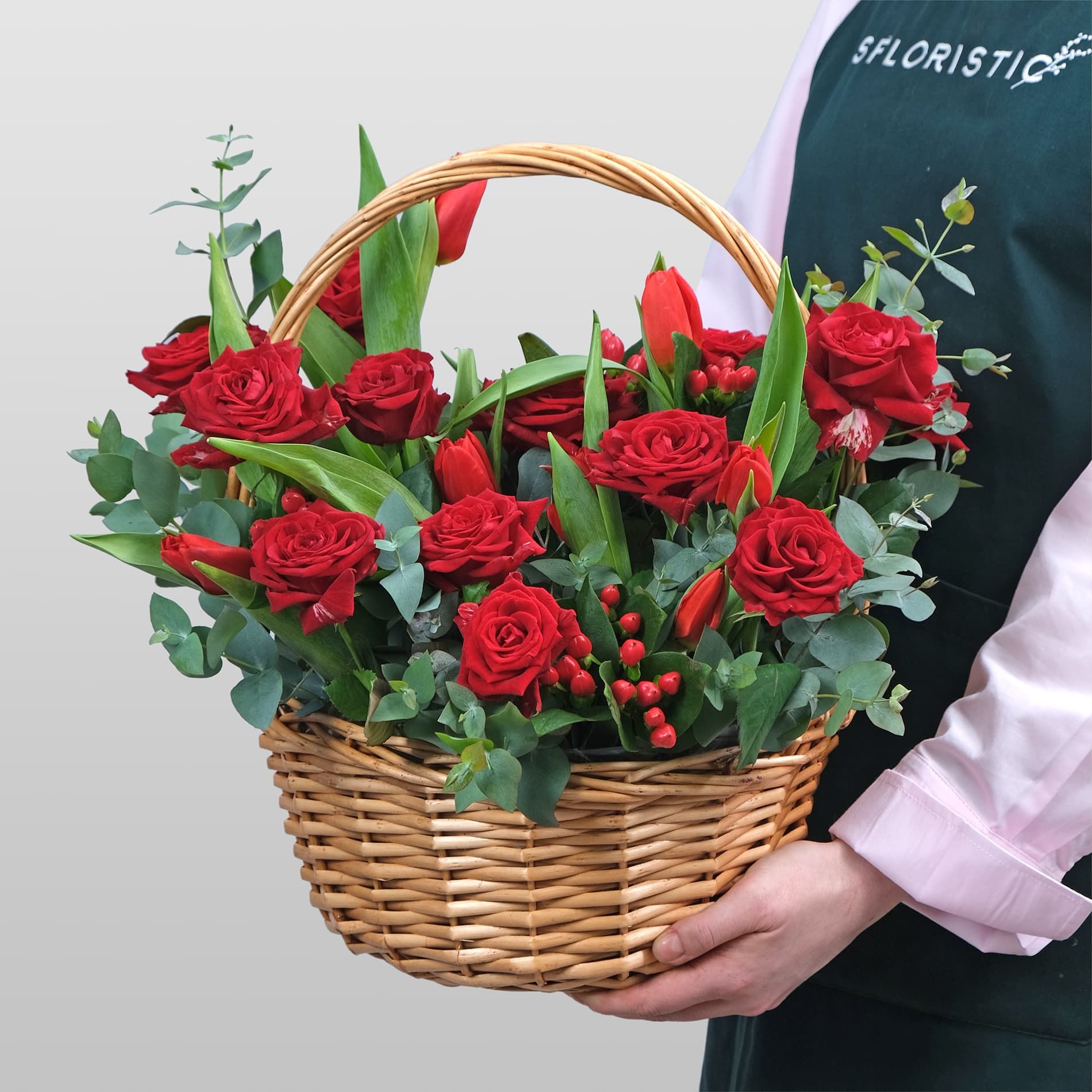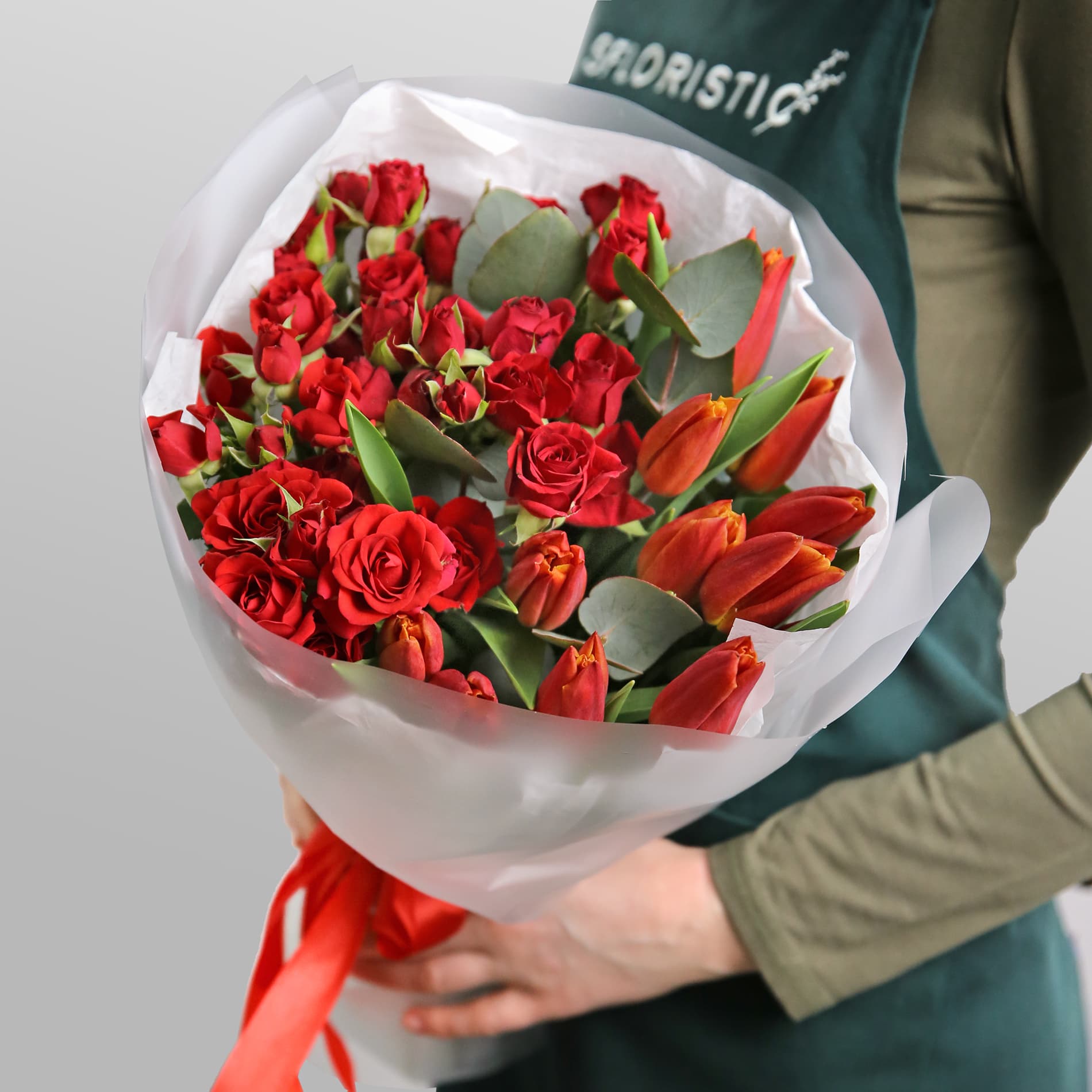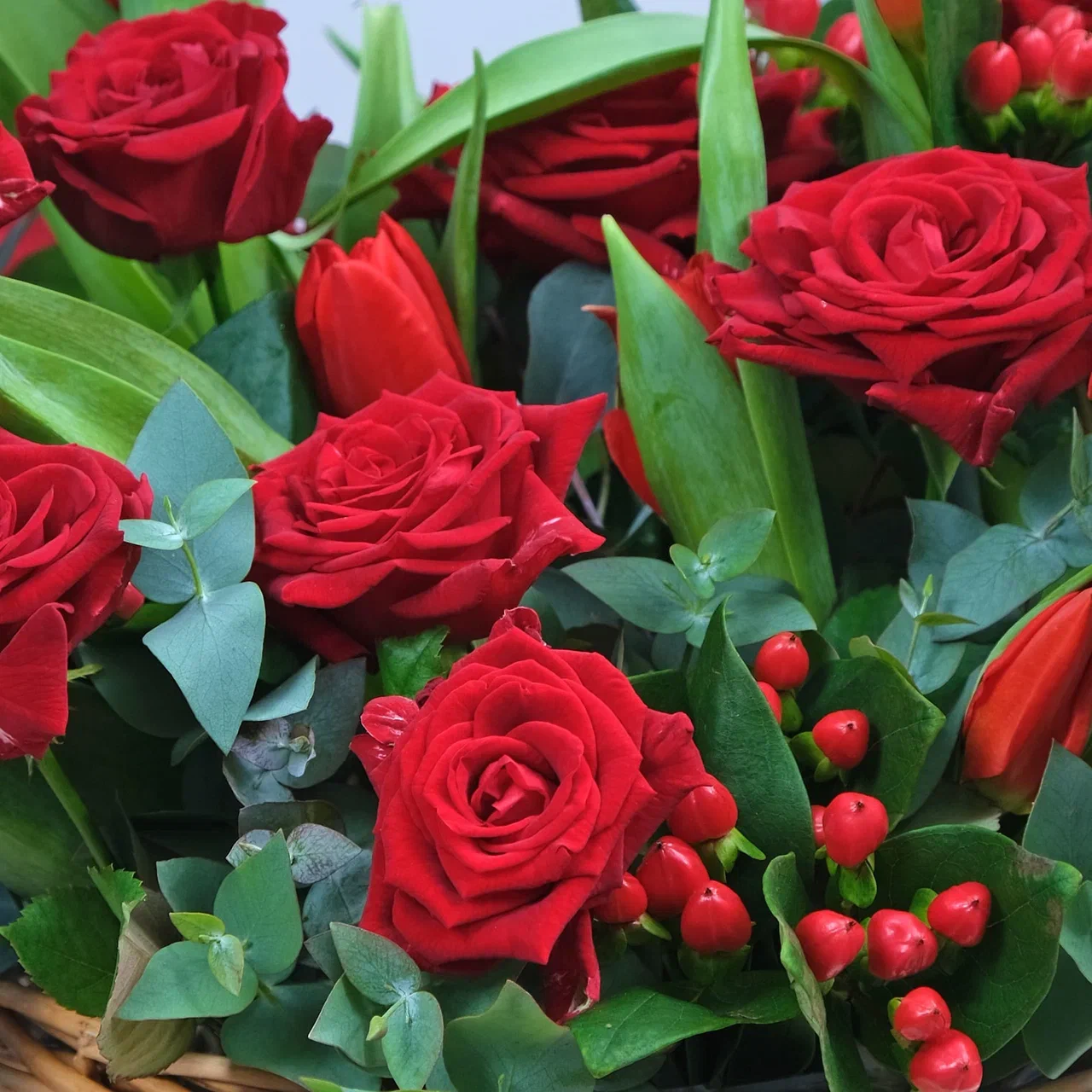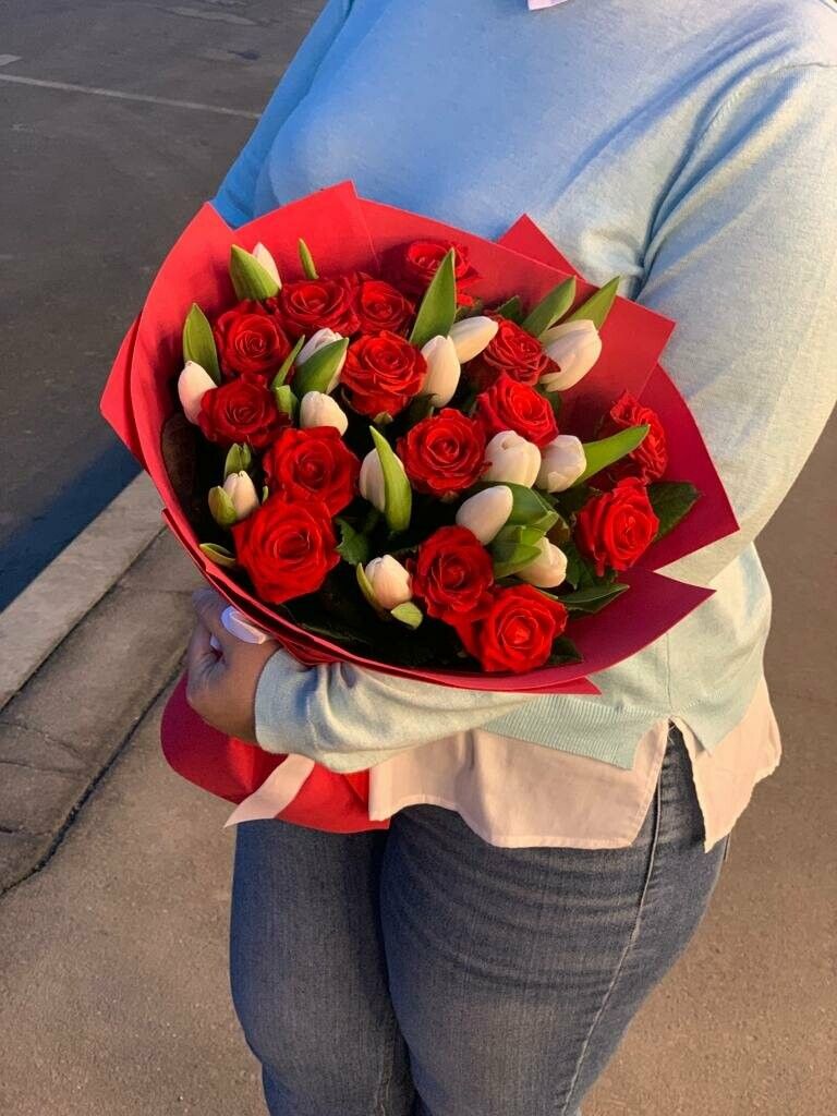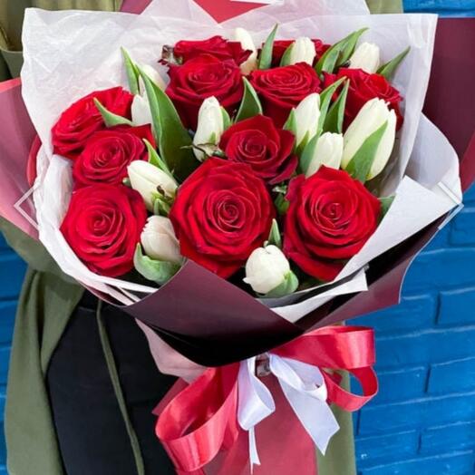 Красные тюльпаны и розы