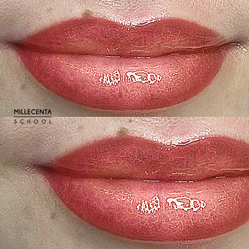 Перманентный макияж губ красный цвет до и после