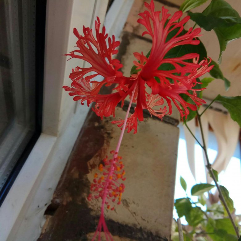 Красный цветок свисает
