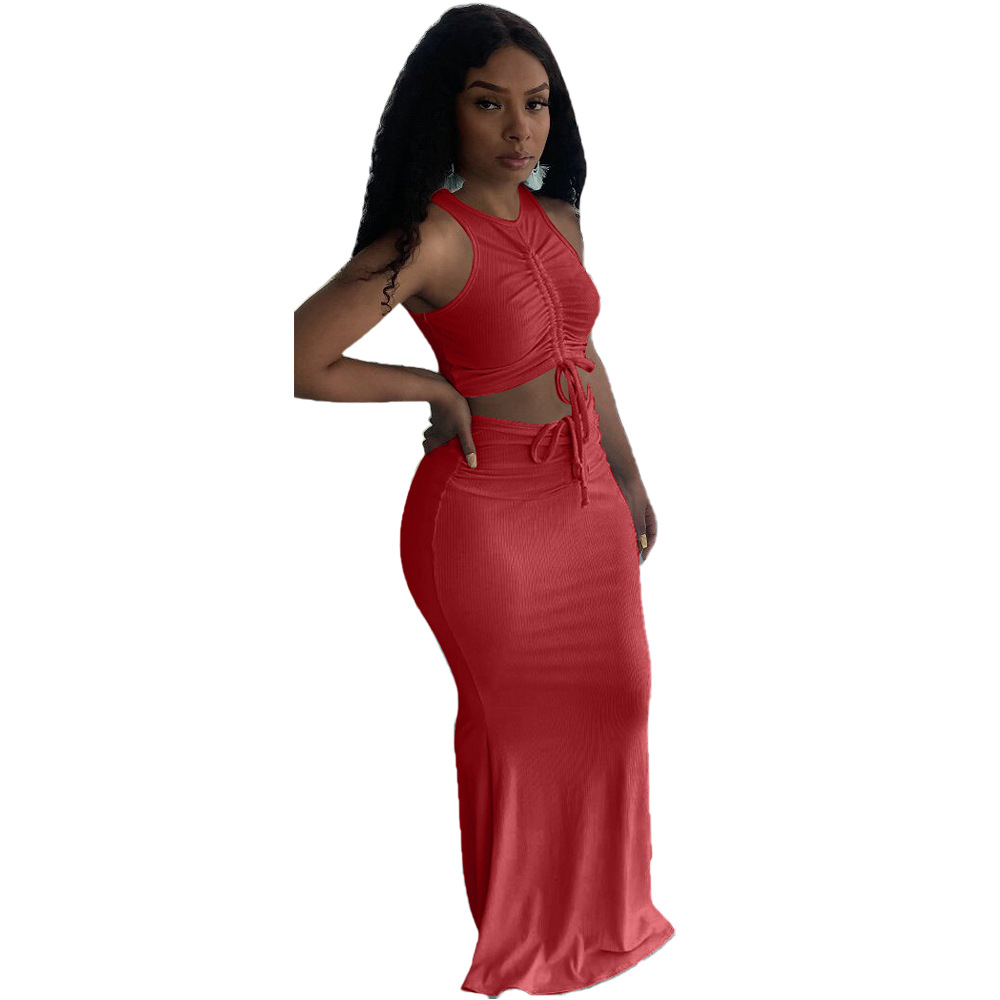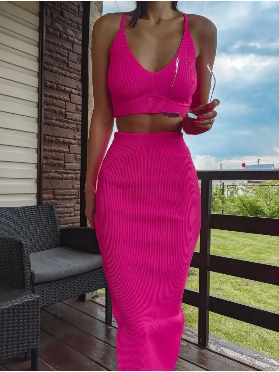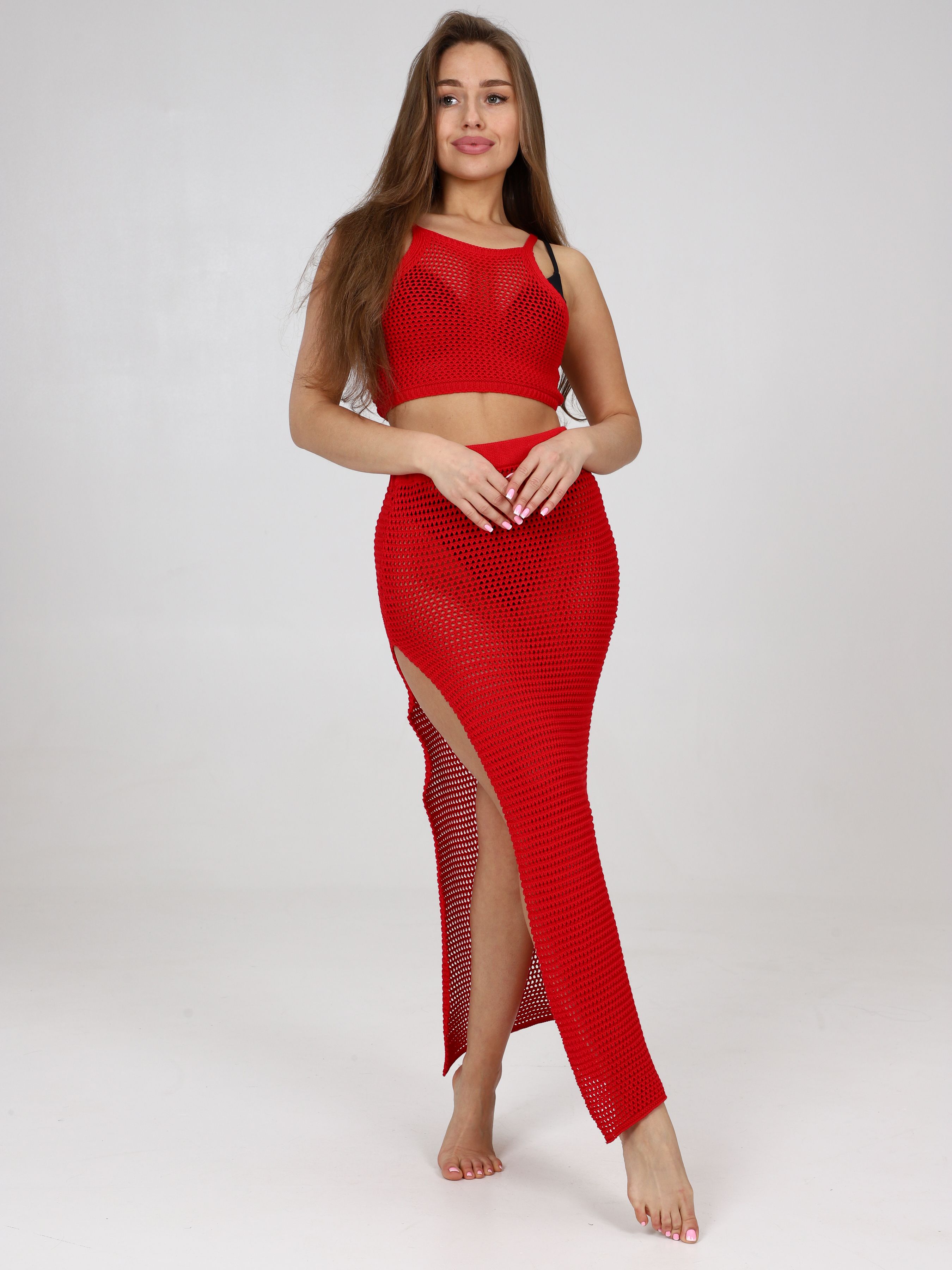 Красный топ и юбка