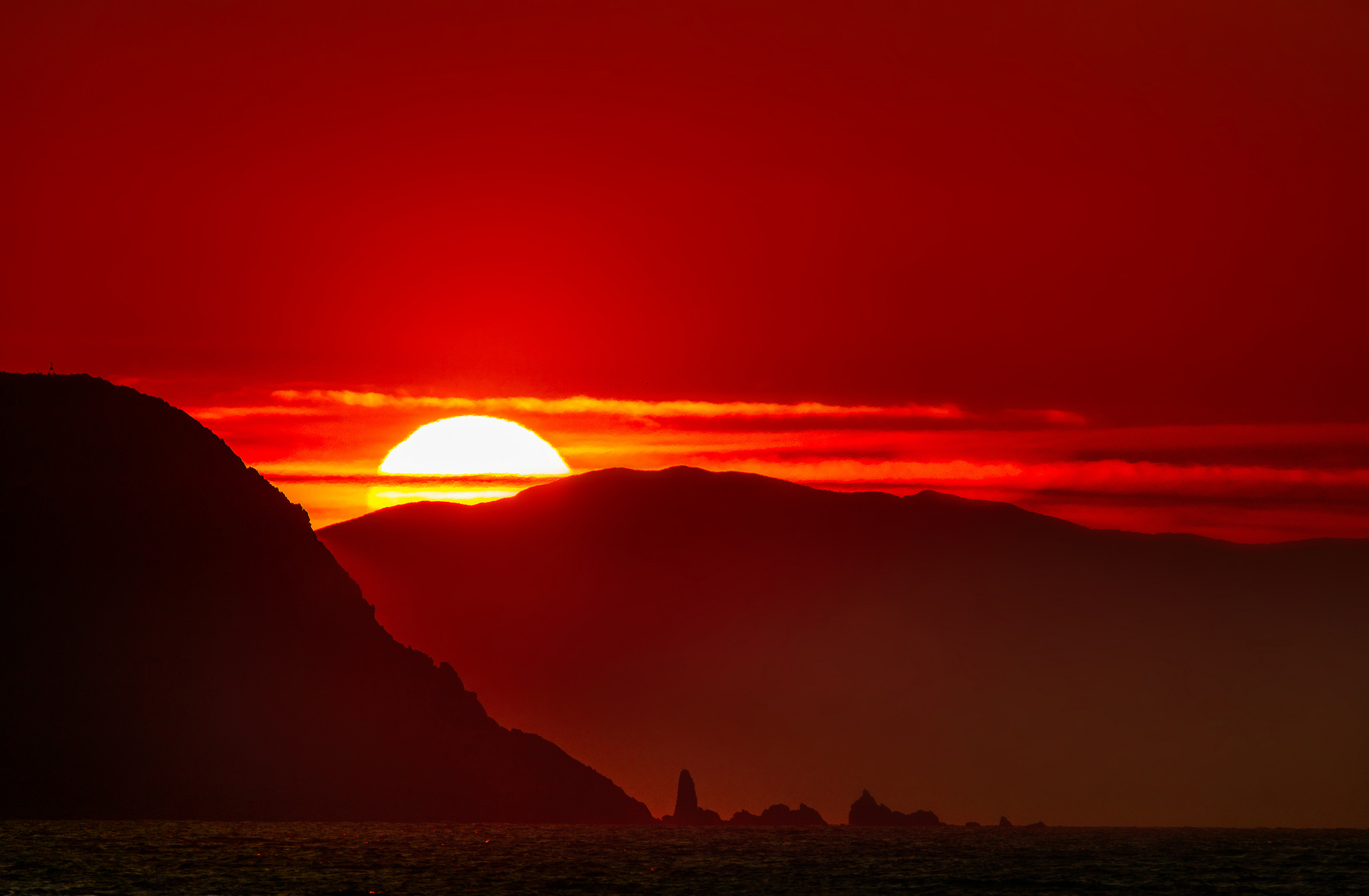 Красный закат в горах