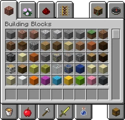 В Креативе в Майнкрафте обычный инвентарный экран уступает место экрану выбора элементов . Это интерфейс со списком закладок, включающих в себя почти любые предметы, а также блоки .