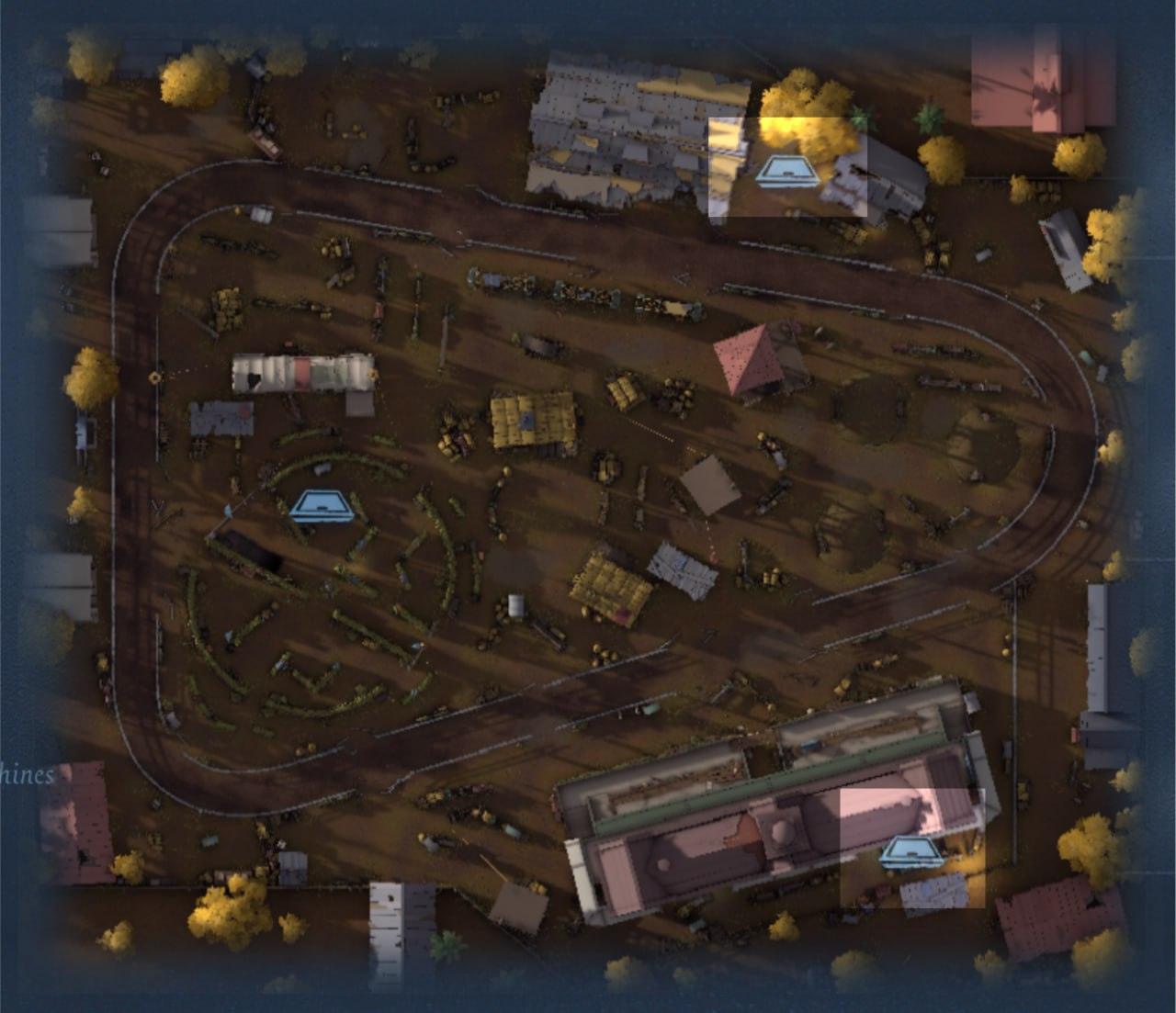 На карте есть три туннеля, которые проходят через небольшие холмы. Выжившие могут израсходовать всю свою выносливость у входа в эти туннели, чтобы быстро пройти их. Выносливость начнет восстанавливаться через 7 секунд. Выжившие могут получить террор шок, если их ударят при прохождении туннеля.