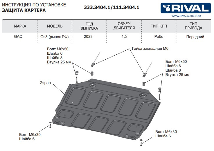 Крепеж защиты картера rival
