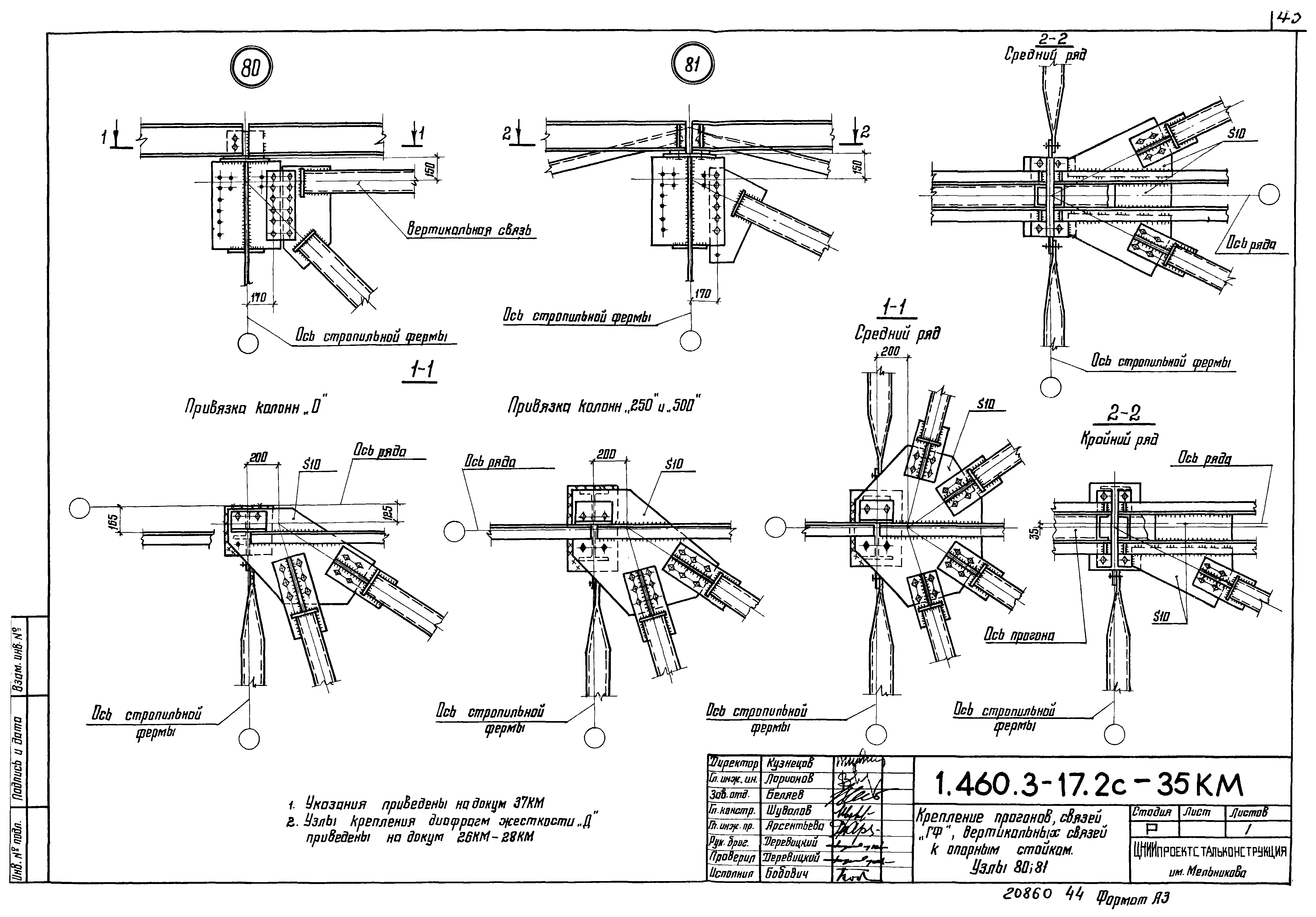 Крепление связей к колонне