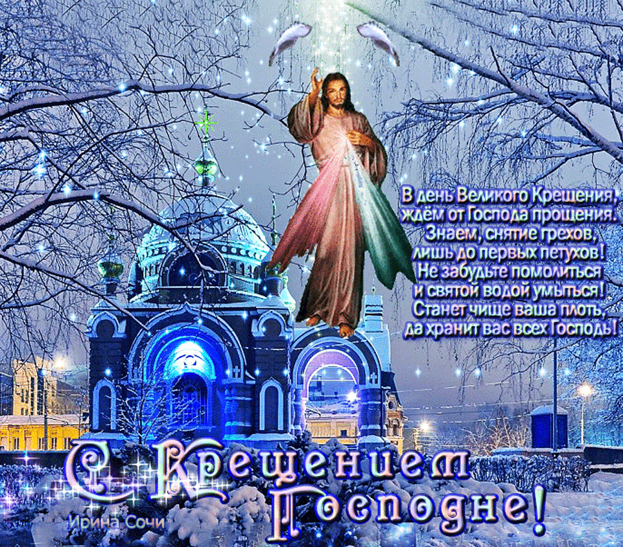 Открытки с Крещением Господним со стихами и поздравительные анимационные блестящие картинки на Богоявление, гиф Открытки на Крещение .