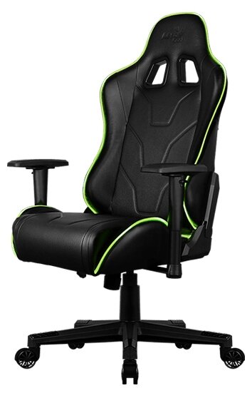 Кресло игровое AEROCOOL AC120 AIR-BG, на колесиках, ПВХ/полиуретан, черный/салатовый [516338]