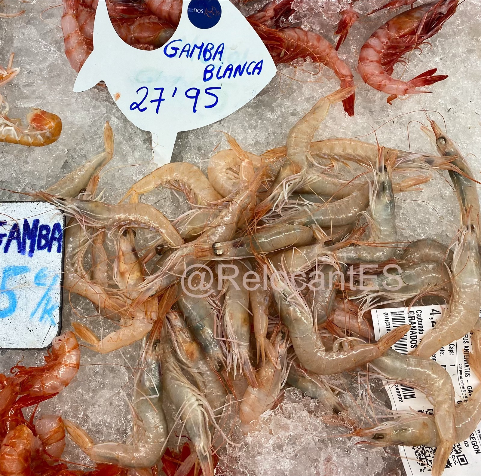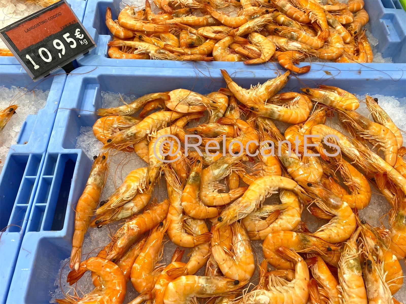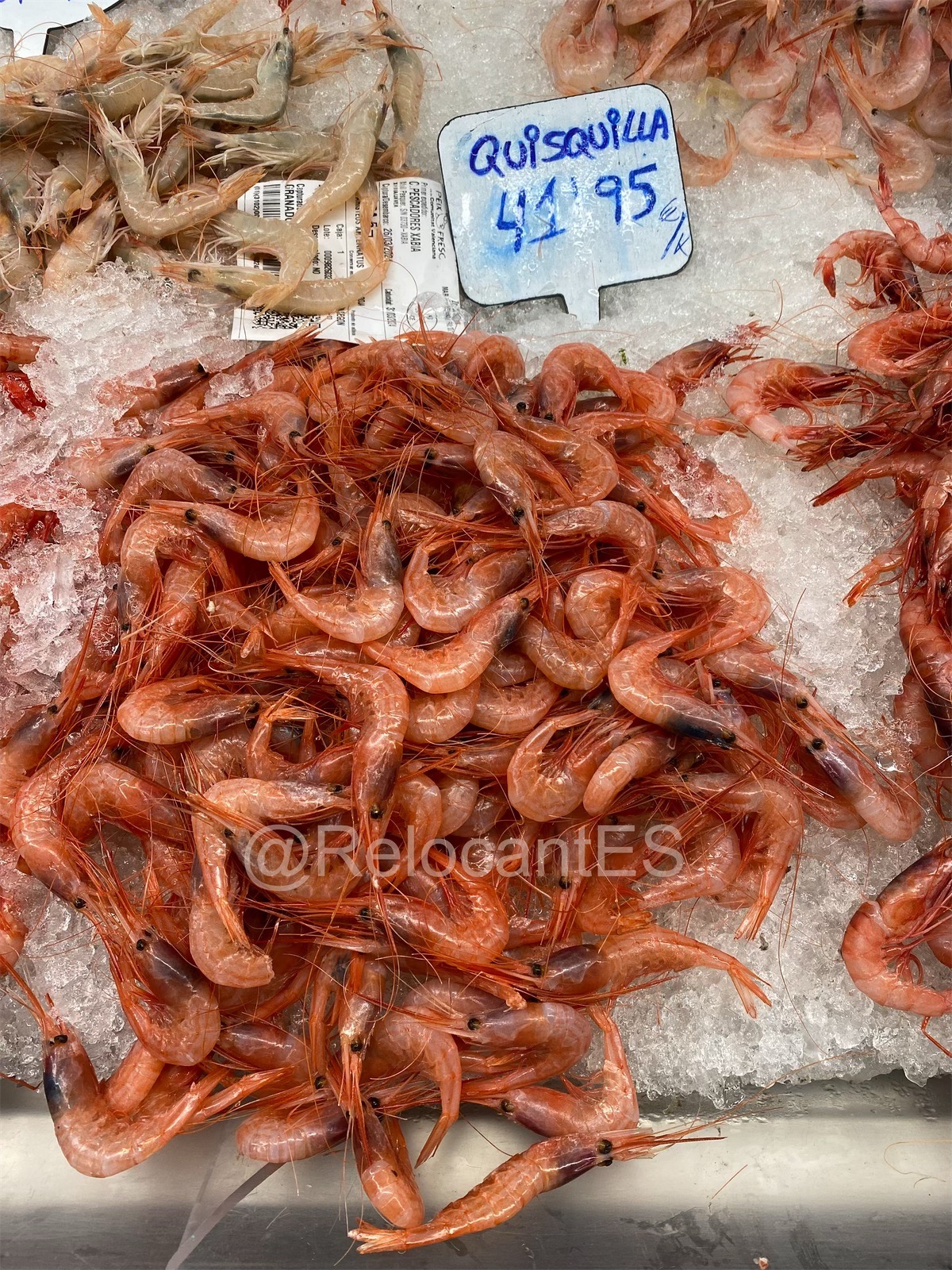 - это та самая креветка, которая знакома жителям стран, удаленных от моря. Едет она тоже издалека (например, из Аргентины или Эквадора). Поэтому проезжает чаще всего уже варёной и замороженной (langostino cocido, langostino congelado). В испанских супермаркетах лангостинос продаются размороженными (descongelados) и выложенными на лёд. Это - один из самых доступных видов креветок (цена ~10-12€/кг). 🦐 Также иногда продают неварёный вариант (langostinos crudos), тоже размороженный.