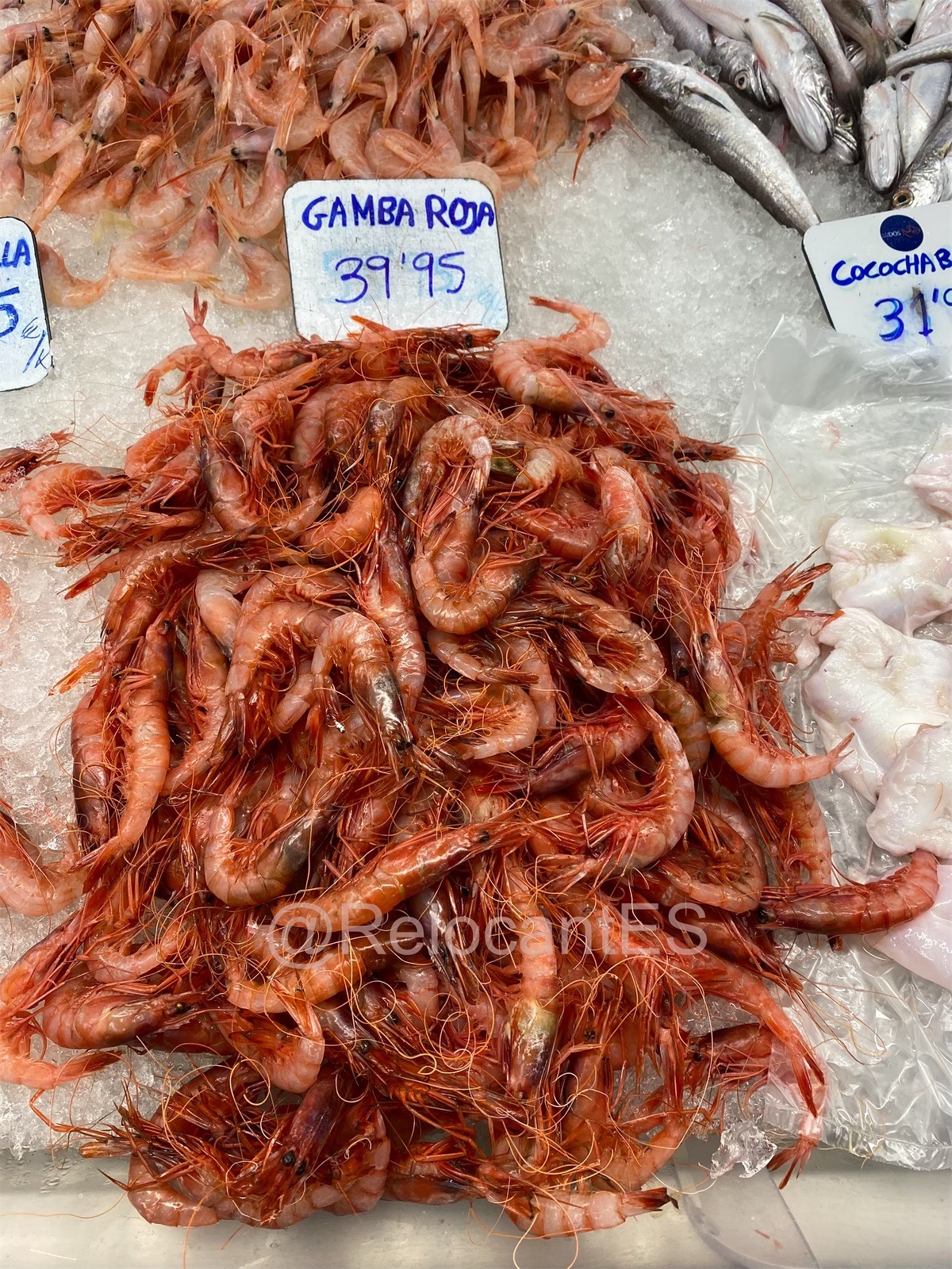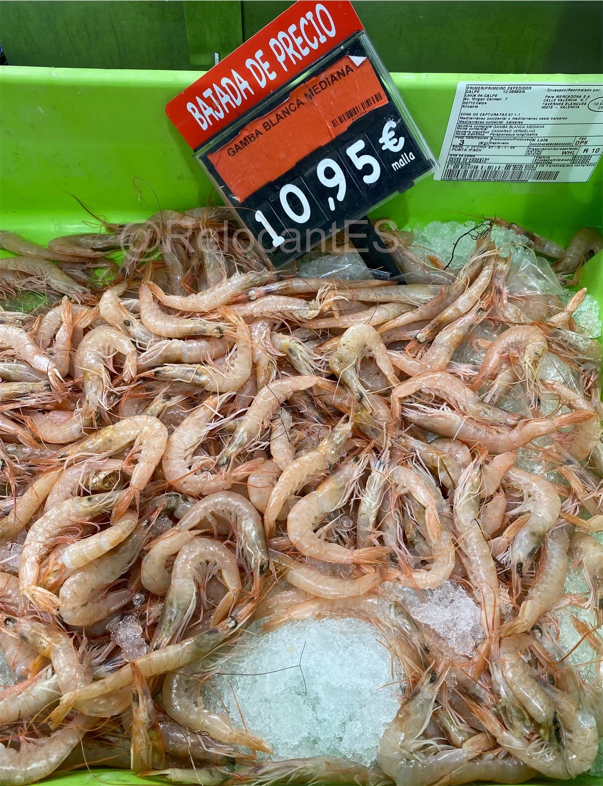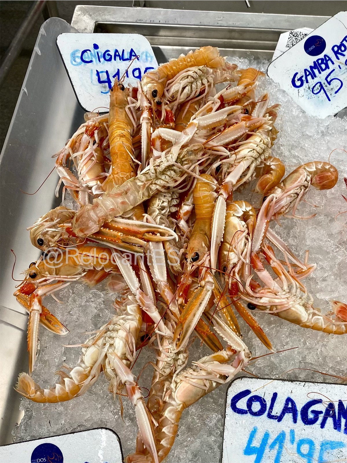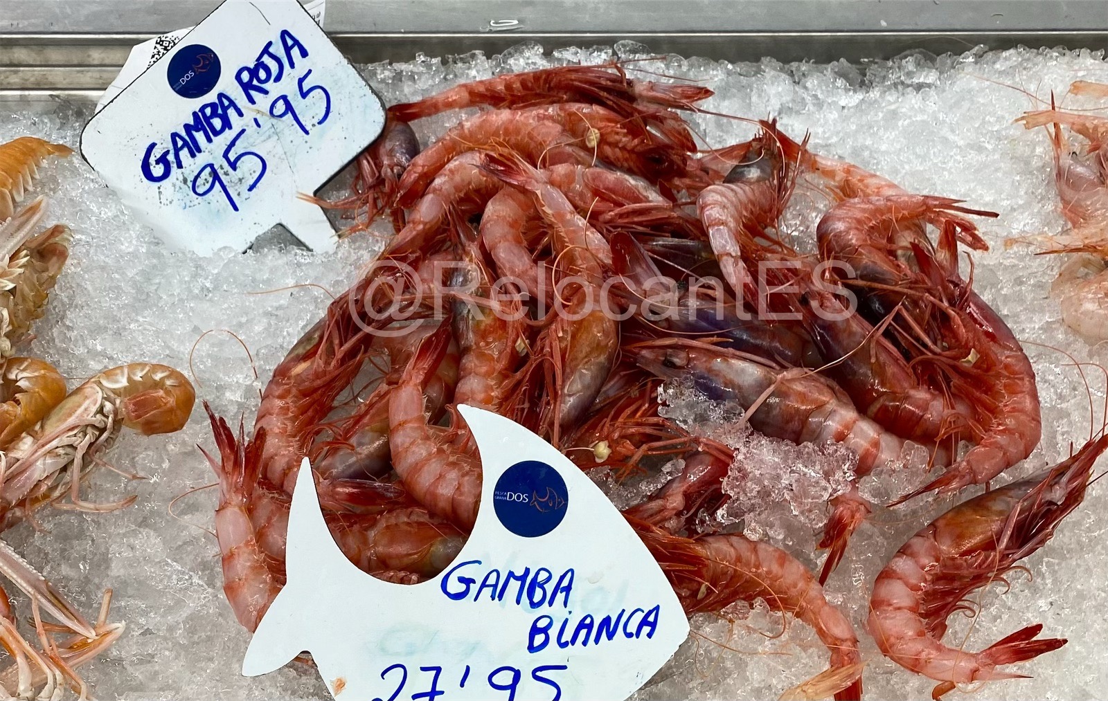 - это та самая креветка, которая знакома жителям стран, удаленных от моря. Едет она тоже издалека (например, из Аргентины или Эквадора). Поэтому проезжает чаще всего уже варёной и замороженной (langostino cocido, langostino congelado). В испанских супермаркетах лангостинос продаются размороженными (descongelados) и выложенными на лёд. Это - один из самых доступных видов креветок (цена ~10-12€/кг). 🦐 Также иногда продают неварёный вариант (langostinos crudos), тоже размороженный.