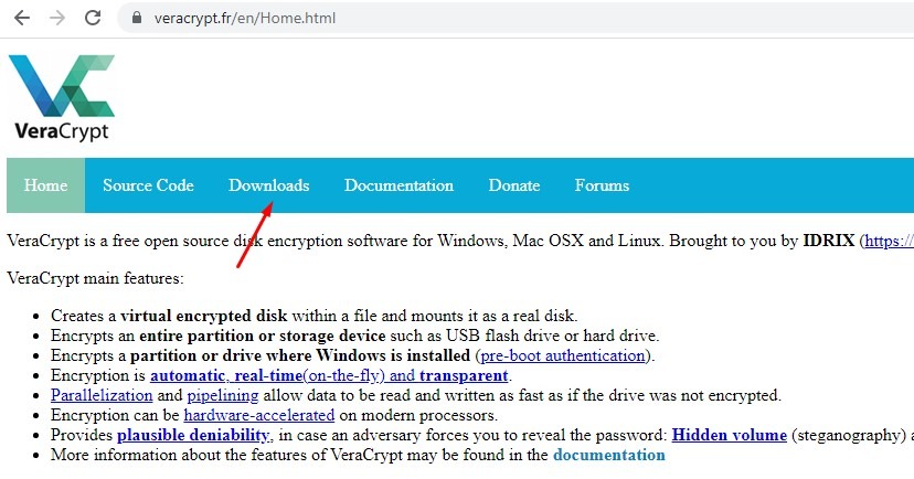 Переходим на сайт veracrypt.fr -> "Downloads"