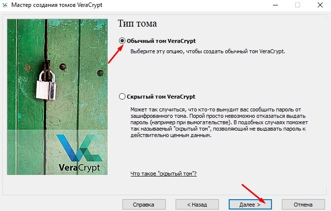 Сейчас нам нужен "Обычный том", он в дальнейшем послужит местом хранения скрытого.