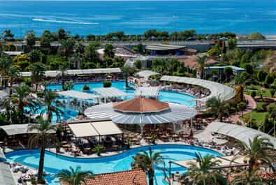 Описание и фото отеля Crystal Hotels Admiral Resort Suites & SPA 5* (Кристал Отели Адмирал Резорт Сьютс 5*) в Сиде (Турция) . Расположение, номера, инфраструктура и услуги .