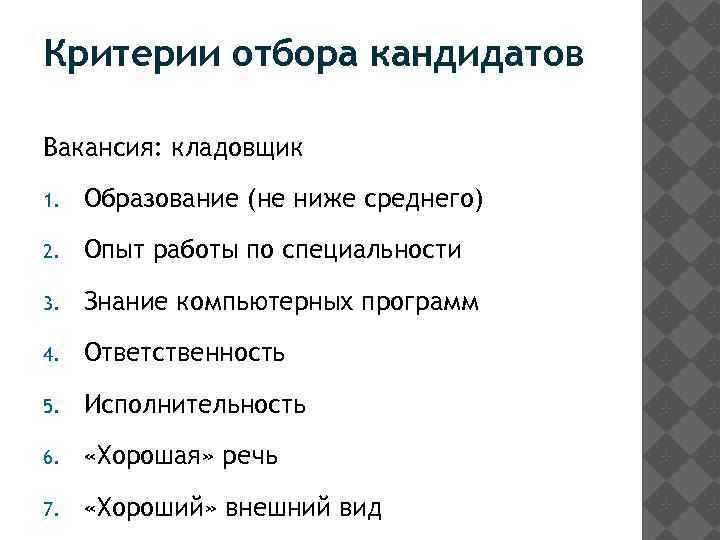 Критерии Отбора Членов