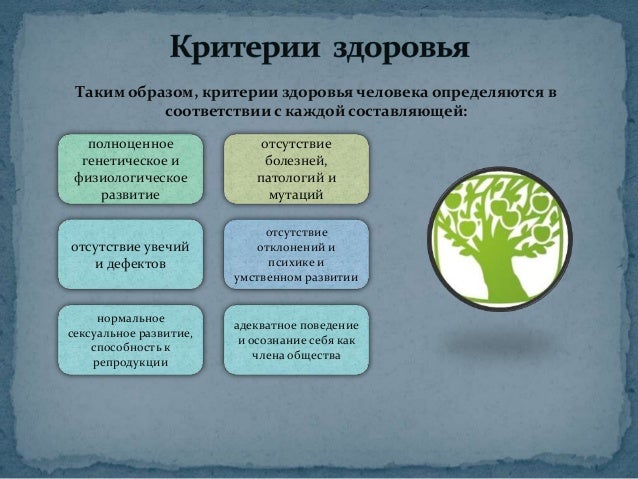 Критерии здоровья человека . Сейчас, чтобы сделать вывод о состоянии людей, обращаются к пяти основным критериям: Наличие или отсутствие недугов, болезней .