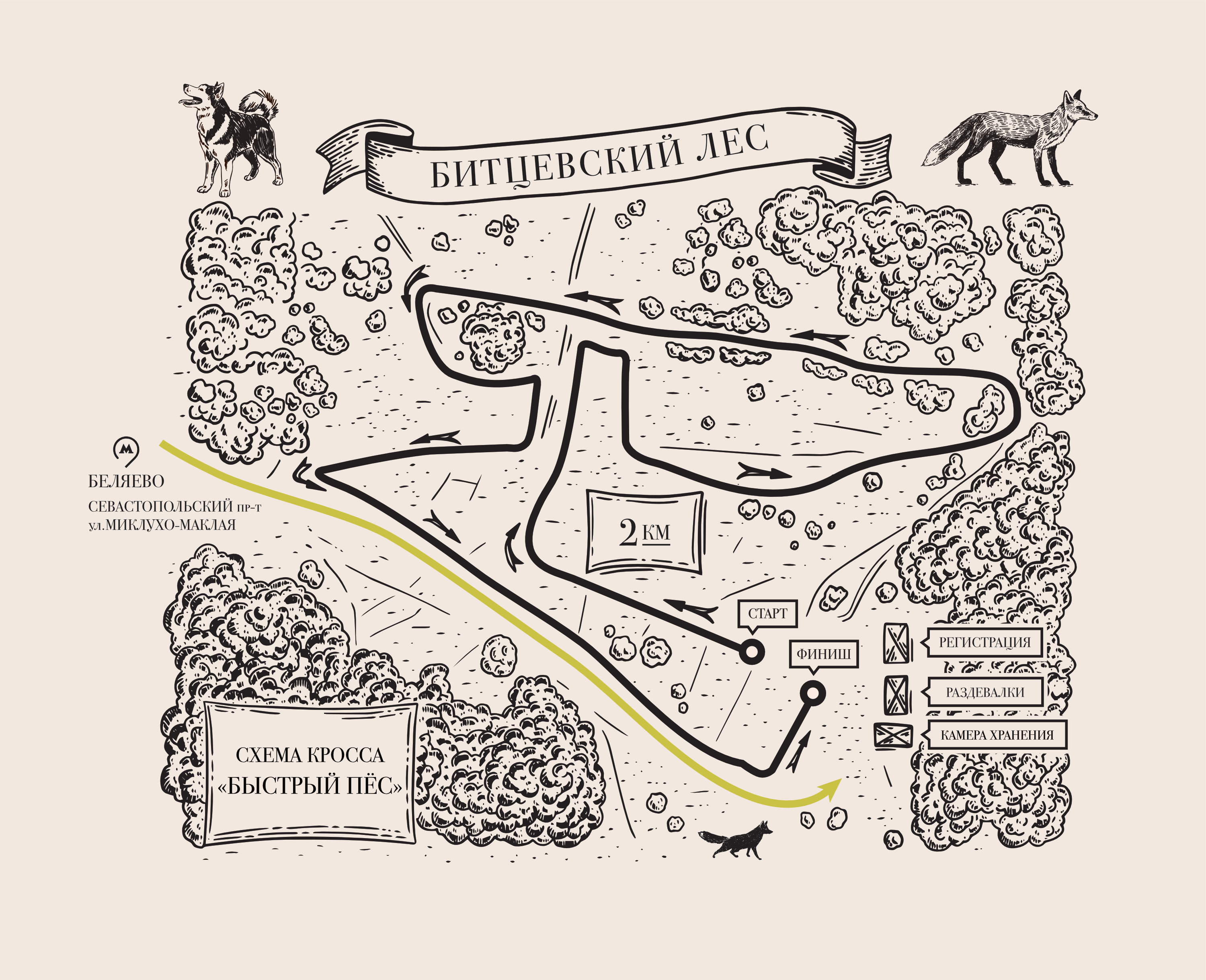 Кросс «Быстрый пёс» . 2 км . Забег с собаками по пересечённой местности в Битцевском лесу в рамках кросса «Лисья гора» . Набор волонтёров откроется в 2022 году .