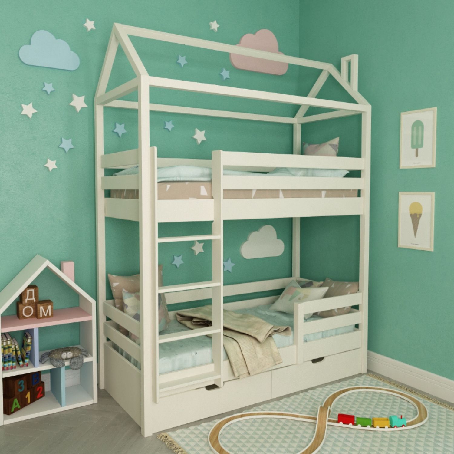 Кровати-домики, Кровати-замки (любые размеры и цвета)